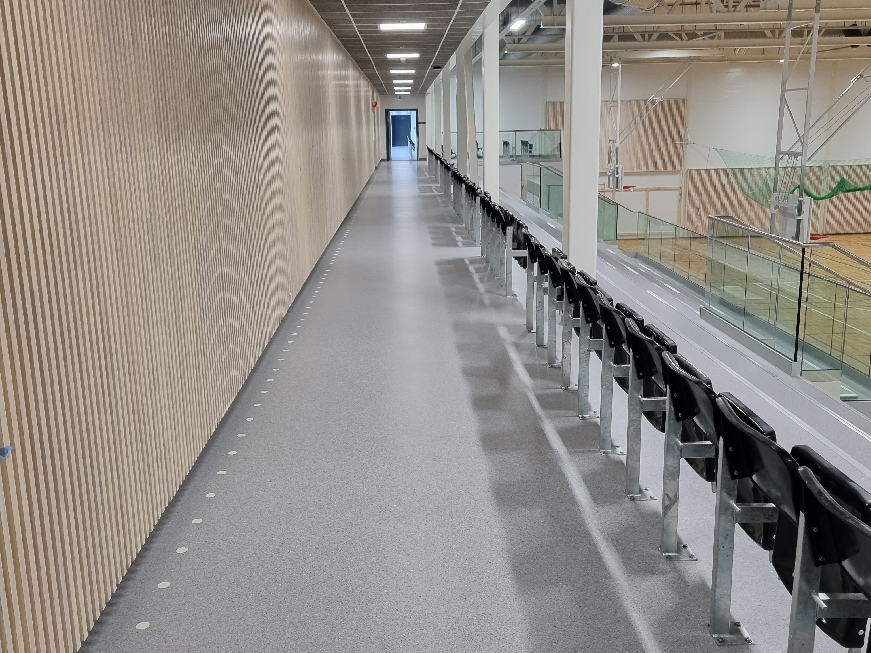- Tribuner (400 sitteplasser til hallflate + 30 sitteplasser til turnhall).