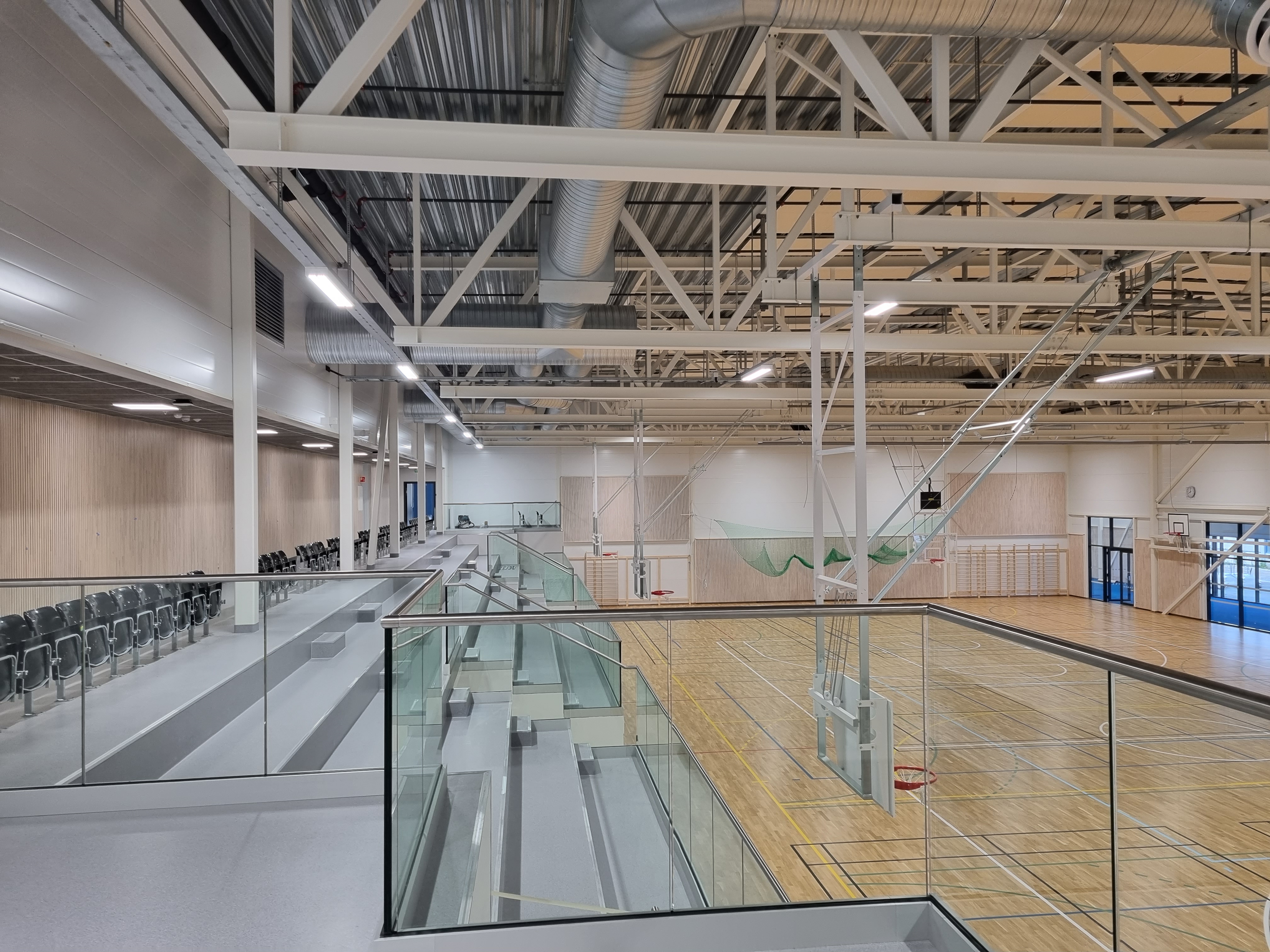 Ballhallen er adskilt fra turnhallen og friidrettssonen med fastvegg, som sørger for at aktivitetene på de to flatene ikke forstyrrer hverandre. Store glassflater mellom hallflatene og helt ned til gulvnivå i byggets fasade sørger for mye dagslys, som er bra for helse og trivsel.
