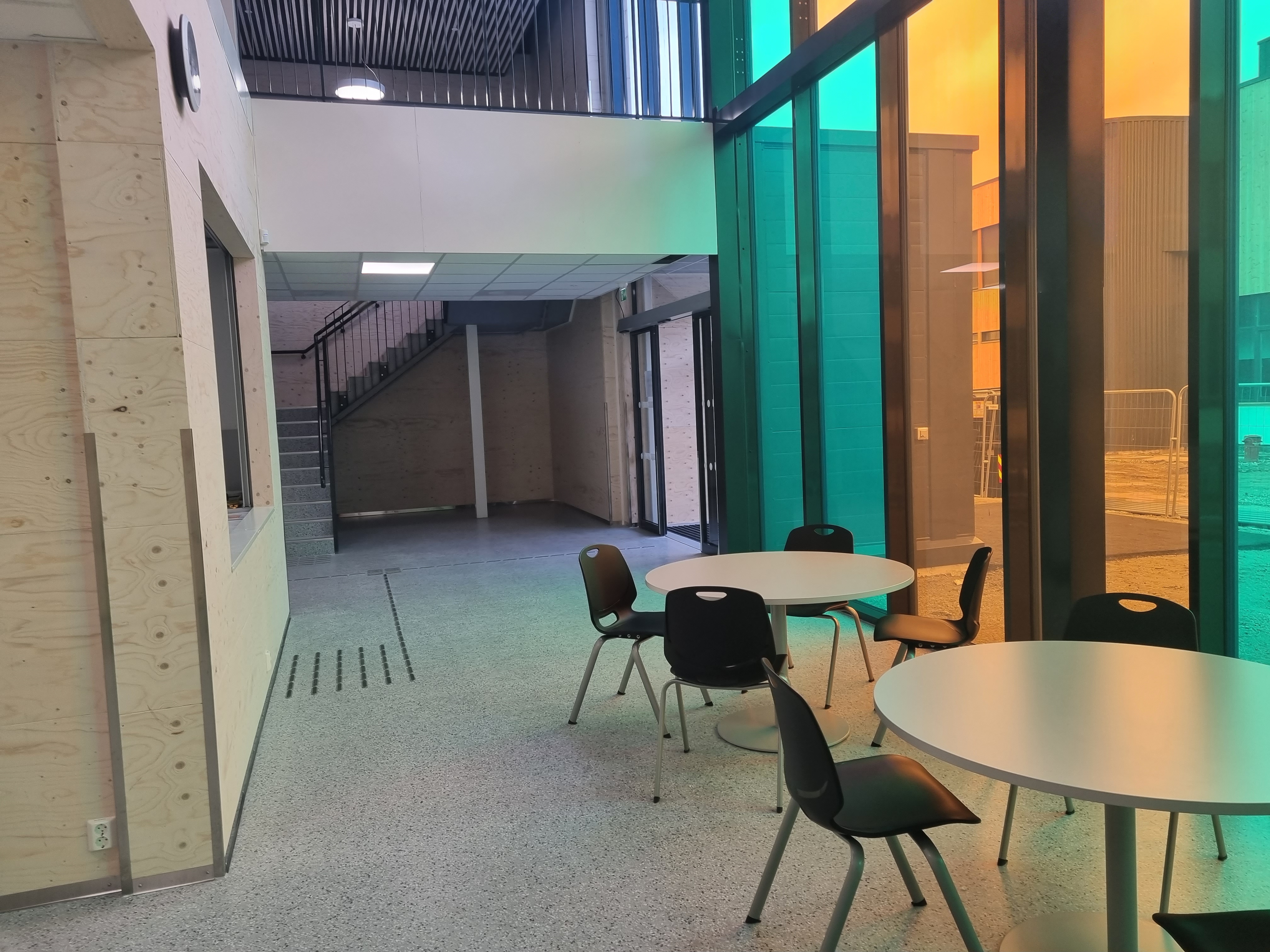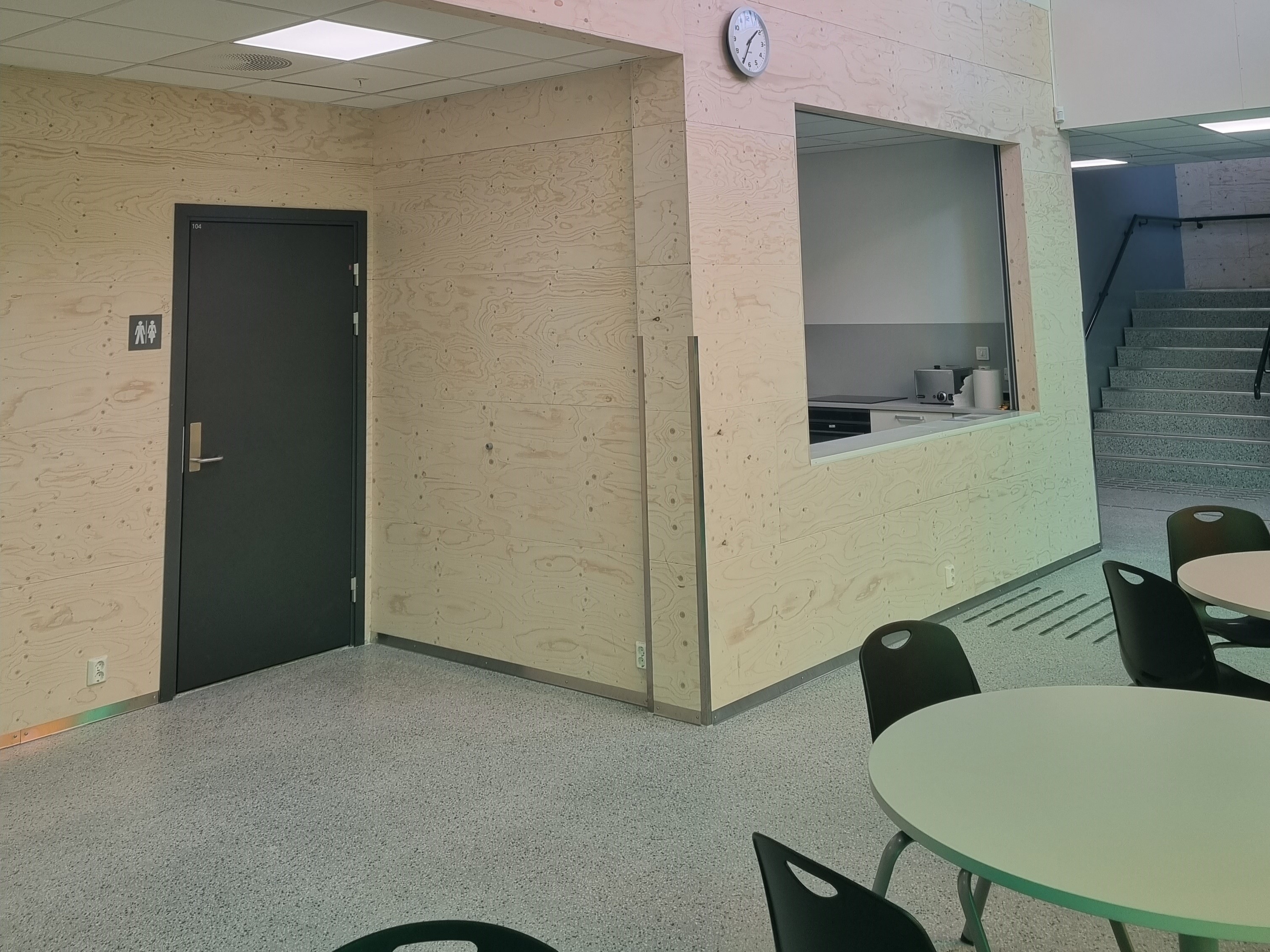 - Vestibyle med kiosk, sittegrupper og WC for publikum.