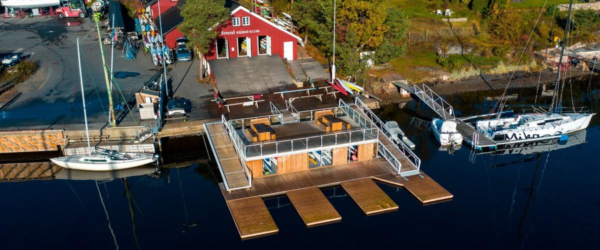 Til tross en liten tomt, har Strand Kajakklubb utnyttet det fulle potensialet, og kan skilte med en stor båthall, treningsrom, en stor brygge, sosiale rom, kontorer og garderober. Alt dette har de fått plass til i det røde huset vi kan se på bildet nedenfor.