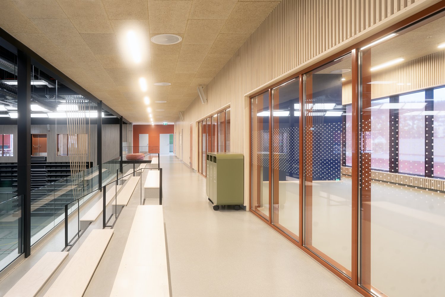- Kunstnerisk utsmykning integrert i både skole og hall, med verk fra 16 kunstnere installert i 2022 og 2023