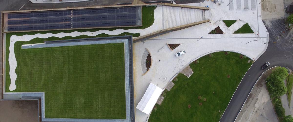 Det til sammen 650 kvadratmeter store solcelleanlegget skal kunne produsere 80.000 kilowattimer i året. I tillegg har man installert 1.200 kvadratmeter med solfangere under asfalten på parkeringsanlegget og torgområdene på prosjektet.