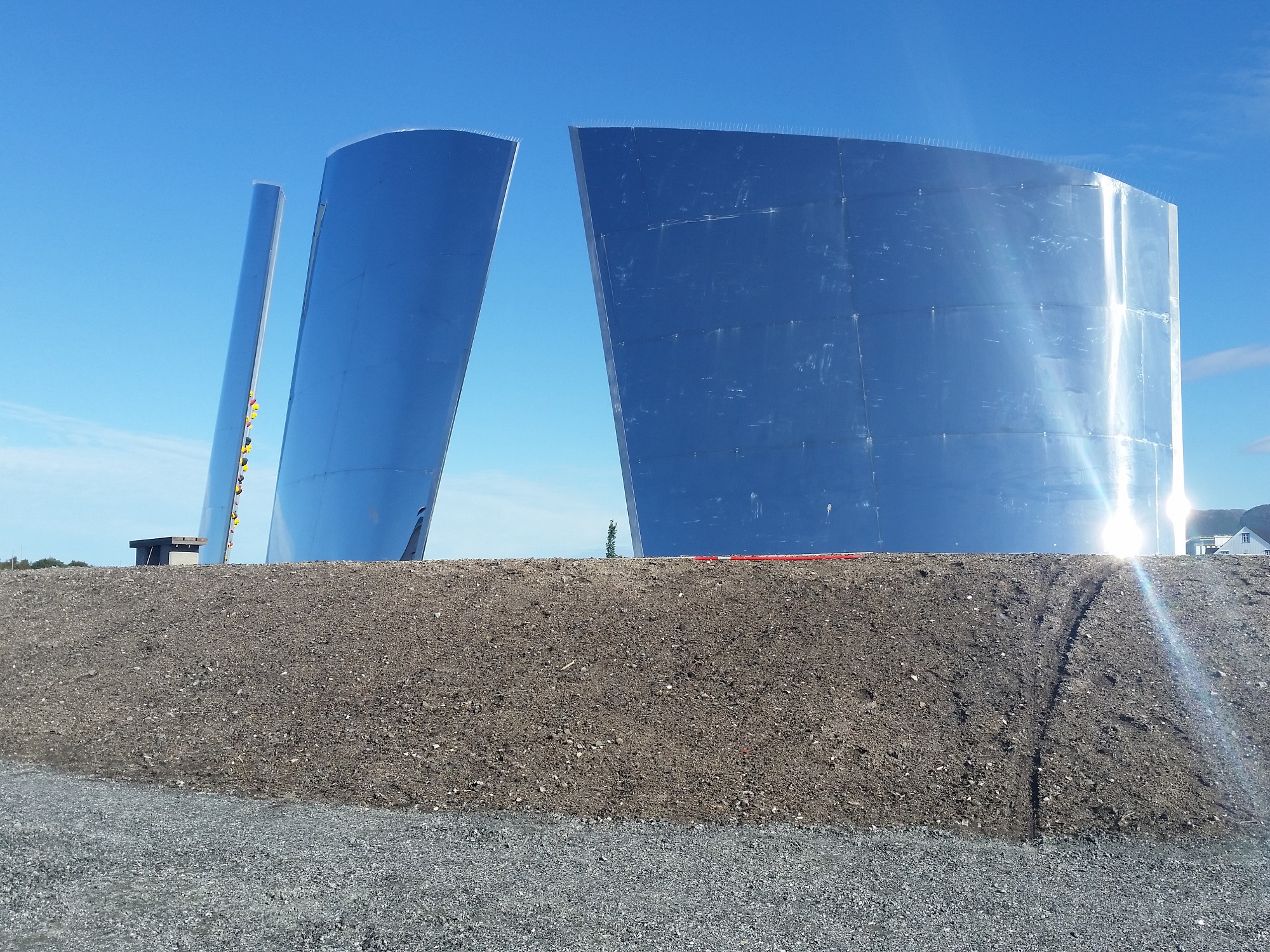 Seilene har en høyde på 7, 8 og 9 meter. Utformingen er forberedt for montasje av klatregrep, og det tilrettelegges med et egnet fallunderlag for friklatring/buldring. Seilene er prosjektert som en stålkonstruksjon med innvendige spant for form og stivhet. Klatresiden er flat for å kunne gi godt hold for klatretakene. De galvaniserte platene har et hullmønster, for montering av klatretak, gjenget for enkel omskruing av nye rutevarianter slik at veggene hele tiden også kan være attraktive for aktive klatrere. Hellingen på veggene varierer: 8, 15 og 21 grader for å gi variasjon. Den buete speilsiden er prosjektert i høypolert syrefast materiale. Speilets bue varierer fra seil til seil i forhold til bredde. Vindpresset på seilene er stort og krever et kraftig fundament som er lagt 40 cm under bakken.