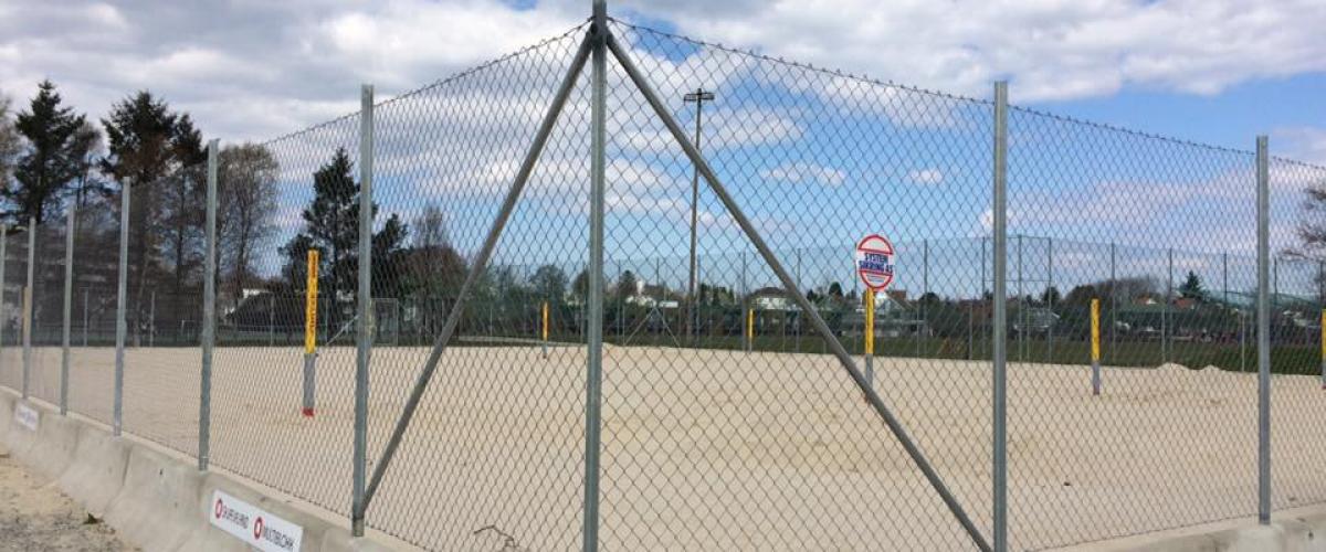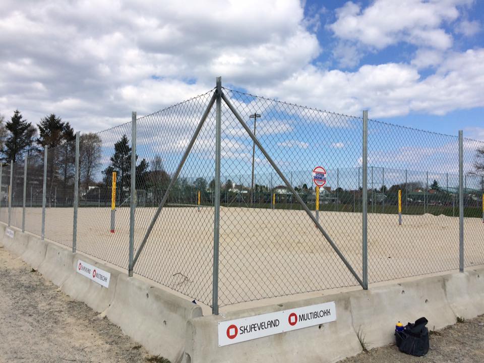 - Gjerdene rundt anlegget burde hatt perforert netting nederst, slik at sanden ble stoppet fra å blåse ut av anlegget. Dette har klubben planer om å utbedre.