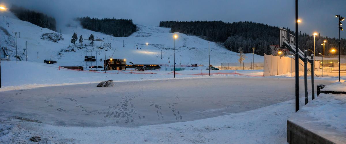 - Basketballbane (sommer) eller skøytebane (vinter)