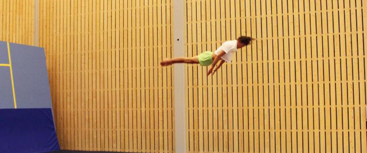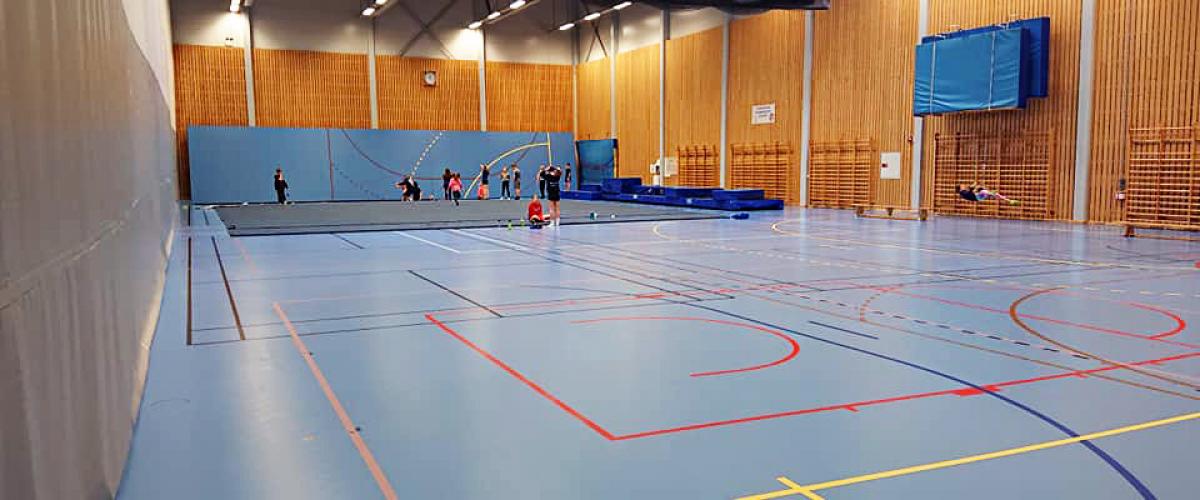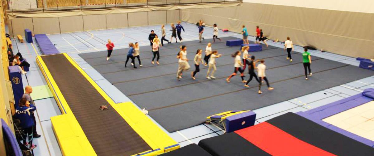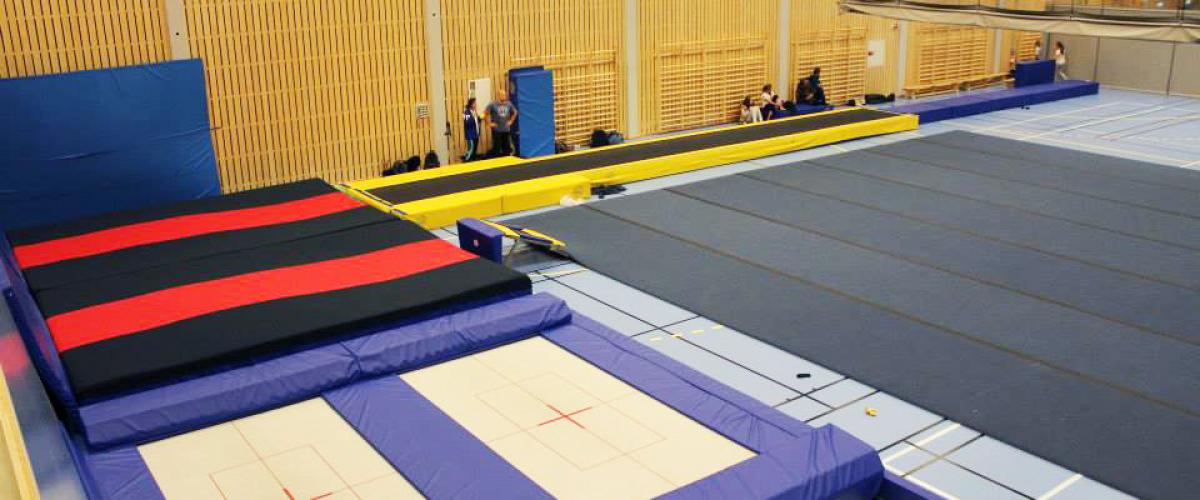 Turnhall med hev/senkbare groper til trampett og tumbling, to stortrampoliner og løsskumgrop. Tumblingbane og frittståendeteppe ligger fremme, i tillegg finnes et godt utvalg av trampetter, landingsmatter og skumapparater, lufttumbling og et utvalg kasser, matter, springbrett mm.