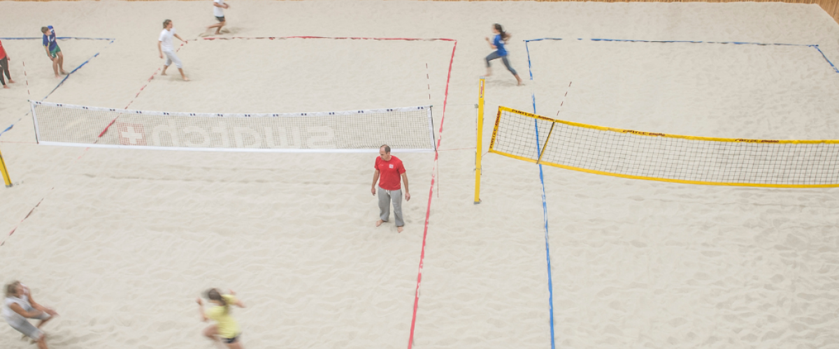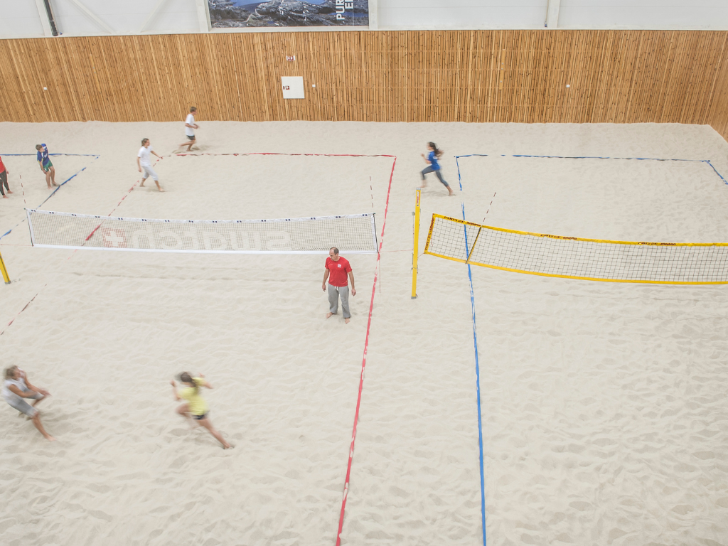 Varmen i sanden tilrettelegger for å trene sandvolleyball gjennom hele året. Anlegget kan settes opp med enten tre treningsbaner, to konkurransebaner, eller gjøres om til en stor bane som holder internasjonale mål[2].