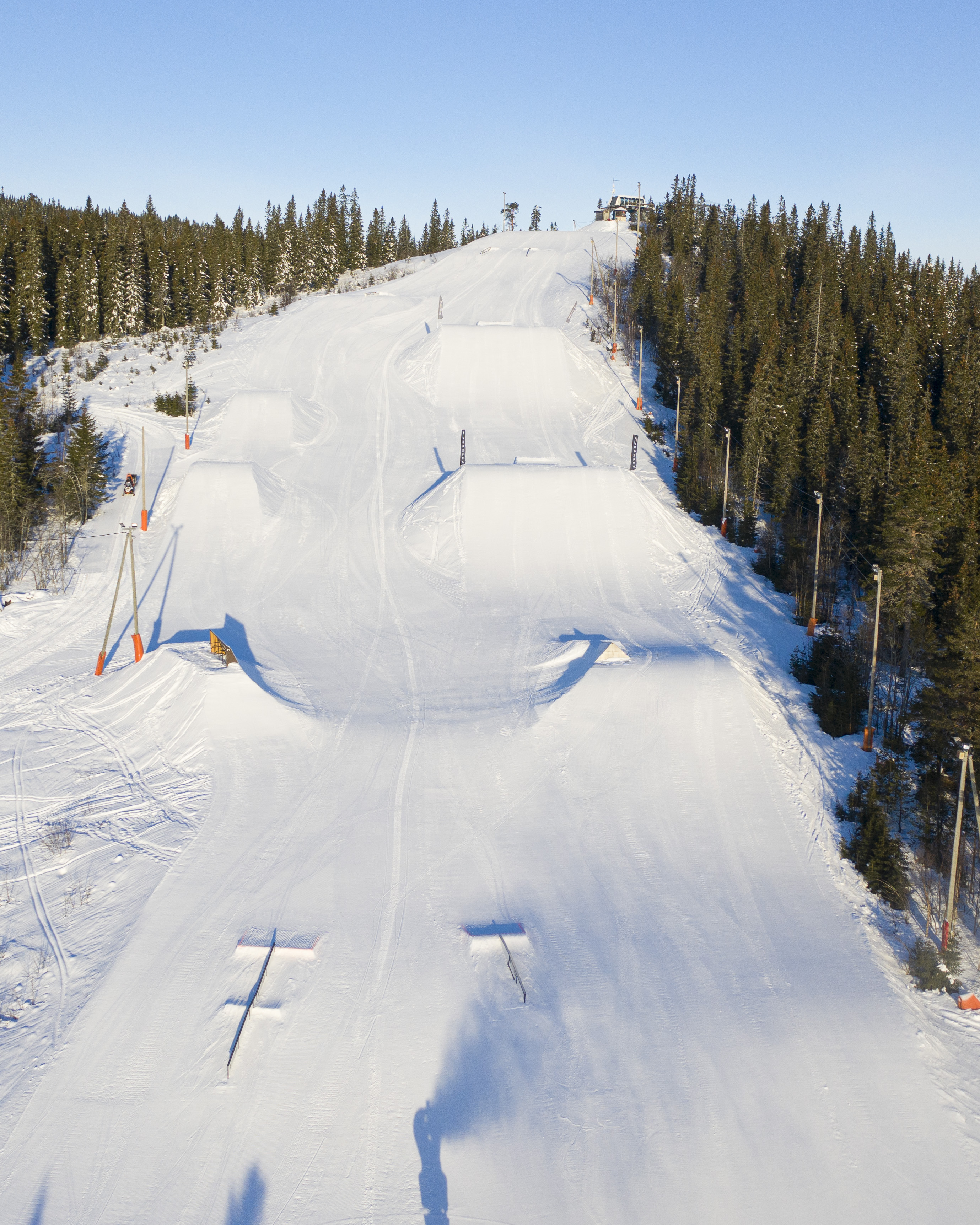 Alle hopp er bygd av kunstsnø, bortsett fra det største svarte hoppet som også delvis er bygd opp av jord. Rails og bokser bygges noe av parken selv, i tillegg til at det kjøpes inn.