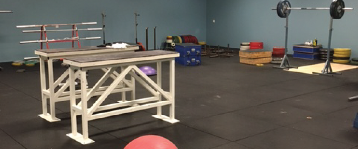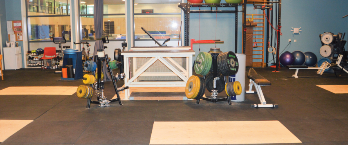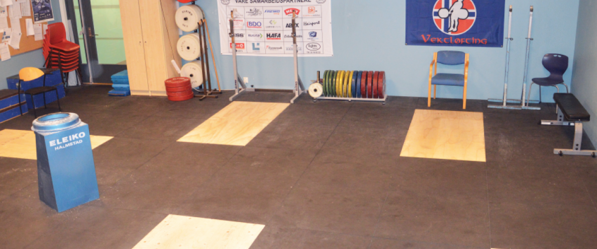 Det er en fast overstøtsbukk i lokalet for trening (se bilde), en 3 x 1 meter crossfitrigg for slynger og basistrening, beinapparater, spenstutstyr, benkpress, ryggapparater mv. og noen kondisjonsapparater for oppvarming. Det meste av utstyret henger på veggene eller er plassert langs kantene, mens et par vektskivestativ står på bakken.