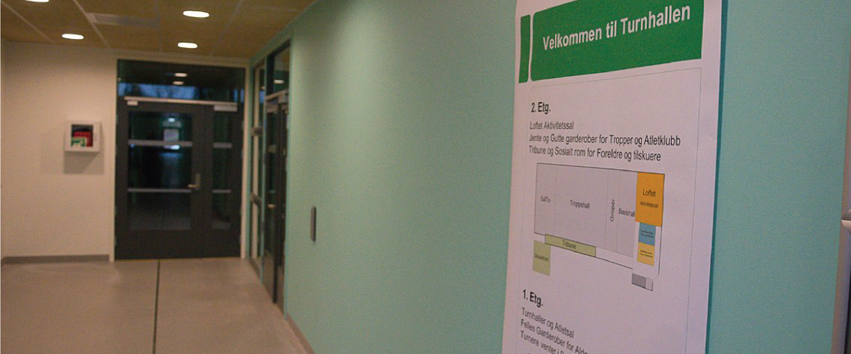 Det er lagt opp et lydanlegg i turnhallen som også er mulig å styre separat for hver del av hallen.