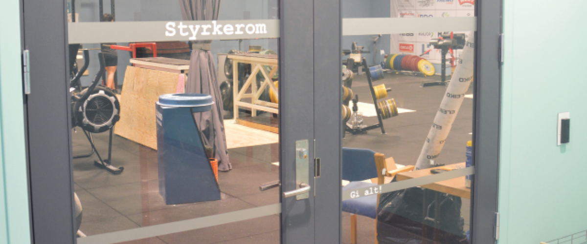 Lokalet for styrkeidrett er på 193 kvm og har en fri takhøyde på 3,2 meter. Det er ikke noe stolper i rommet, så hele arealet kan brukes til aktivitet. Adgang til rommet er via to glassdører; én hovedinngang fra barfotagang og garderober, og én dør som går ut i et annet gangparti. Det er store vinduer (totalt 6 x 3 meter) mellom styrkerommet og basishallen, som gir et åpent inntrykk og samspill mellom lokalene. Det var ikke mulig å bygge vinduer mot utsiden, da tomtegrensen var maks utnyttet og det gikk ikke å sprenge bort mer utenfor for å kunne åpne opp for vinduer. Derfor er vinduene mellom basishallen og styrkerommet viktige for å unngå følelsen av "kjellerlokale".