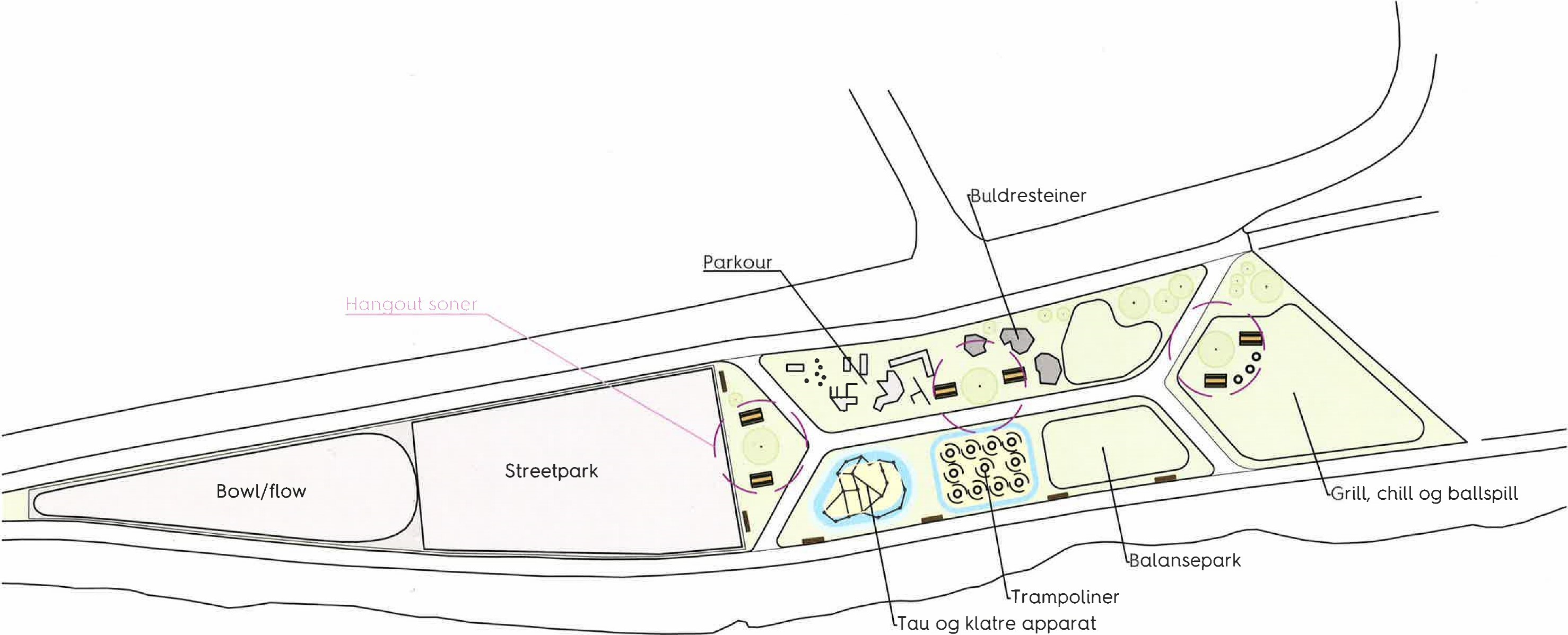 Aktivitetsparken skal være et sosialt møtested, og et sted som engasjerer folk i alle aldre, uavhengig av bakgrunn, hudfarge, ferdigheter til lek, mestring og fysisk fostring ut fra det nivå en selv vil.