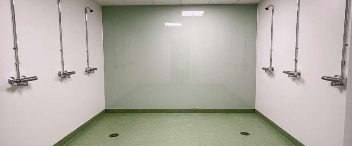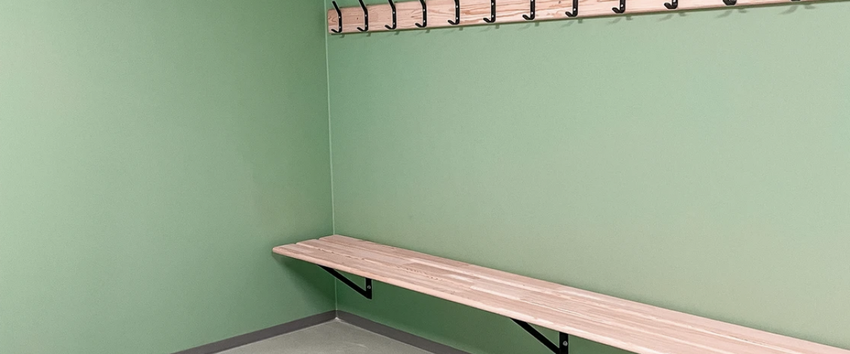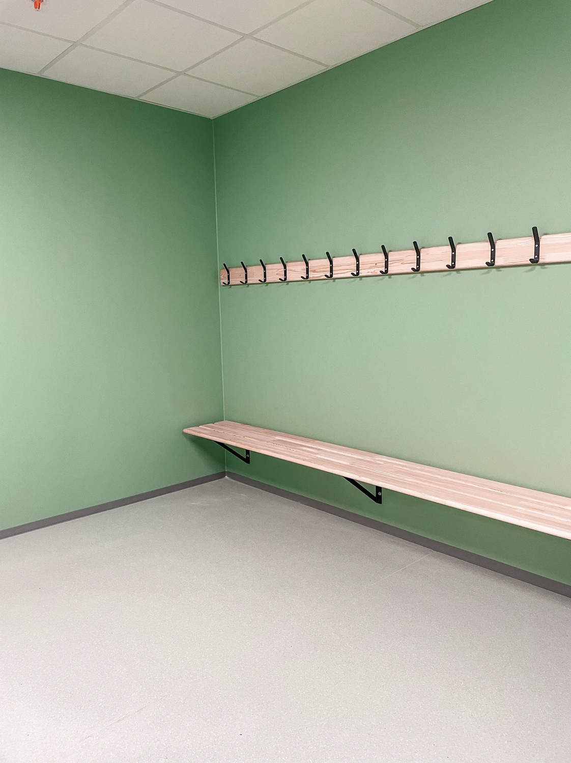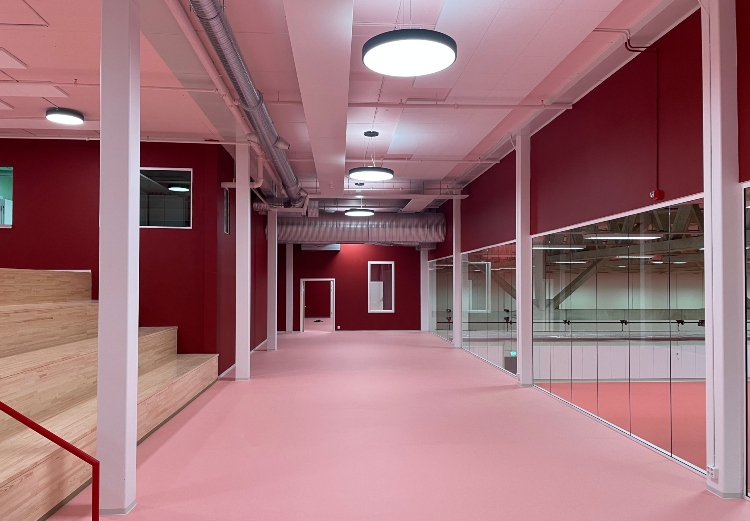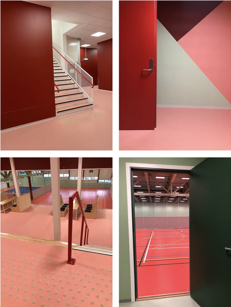 – Selv er jeg en aktiv volleyballspiller, og har vært i mange haller opp igjennom. De nye er ofte hvite og grå, og identitetsløse. Vi brukte derfor farger der dette ikke ga noe merkostnad, og satte sammen en palett som var delvis inspirert av 80-tallet. Vi valgte oss grønn, rosa, burgunder og hvit, flere av dem i en pastell-variant.