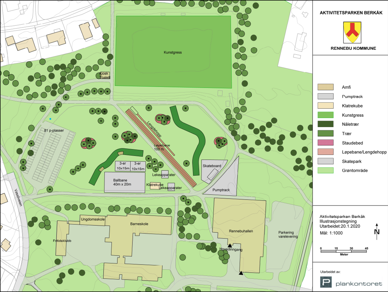 - Anlegget ligger sentralt på Berkåk og benyttes jevnlig av skolen og barnehagen på dagtid. Utenfor arbeidstid benyttes fasilitetene flittig av innbyggere og besøkende. Med flott belysning er anlegget attraktivt og trygt å bruke.