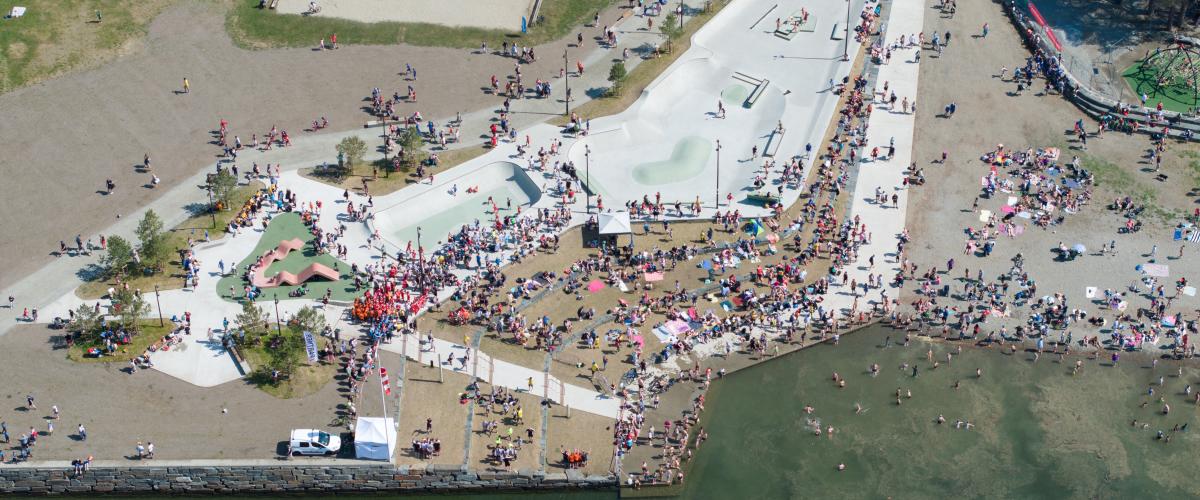 - Fleksibilitet og variasjon: I tillegg til skateparken inkluderer området amfi, sandstrand, leikeområde og andre fasilitetar, noko som gjer parken til ein levande møteplass for folk i alle aldrar og interesser.