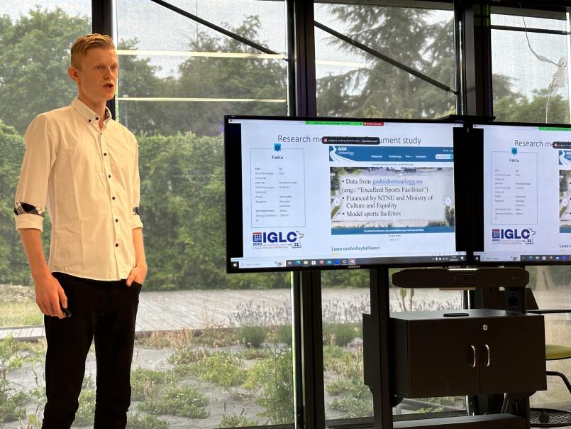 Norges teknisk-naturvitenskapelige universitet (NTNU) har et av landets fremste miljøer for lean construction, og har i mange år vært representert på IGLC-konferansene. I år deltok imidlertid godeidrettsanlegg.no og NTNU Senter for idrettsanlegg og teknologi (SIAT) for første gang. SIAT var representert gjennom senterleder Olav Torp og doktorgradsstipendiat Tobias Onshuus Malvik, og godeidrettsanlegg.no var representert ved forskningsassistent Johan Christie Ørke. I forbindelse med konferansen hadde de publisert en forskningsartikkel med tittelen «Life cycle cost and value of Norwegian sports facilities», dvs. «Livssykluskostnader og verdi av norske idrettsanlegg». Artikkelen var basert på informasjon og data fra godeidrettsanlegg.no sine forbildeanlegg. Med utgangspunkt i artikkelen presenterte godeidrettsanlegg.nos Johan Christie Ørke et innlegg, hvor han gjorde rede for artikkelen og dens resultater. Innlegget ble godt tatt imot av publikum, og førte til interessante diskusjoner i etterkant.