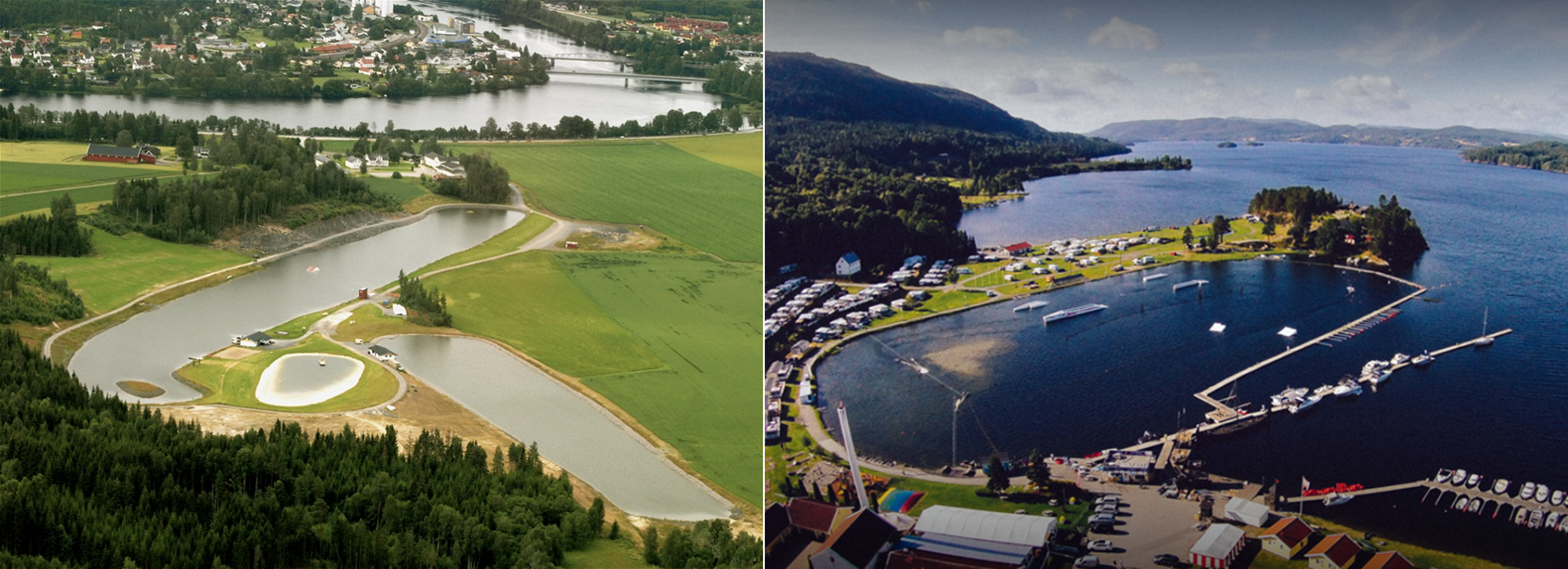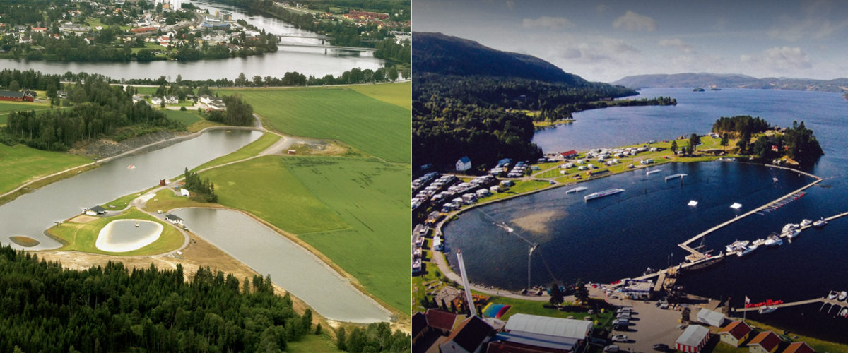 Bildene er fra vannskiarenaen på Skarnes (til venstre) og Norsjø Kabelpark (til høyre). Delt med tillatelse fra NVWF.