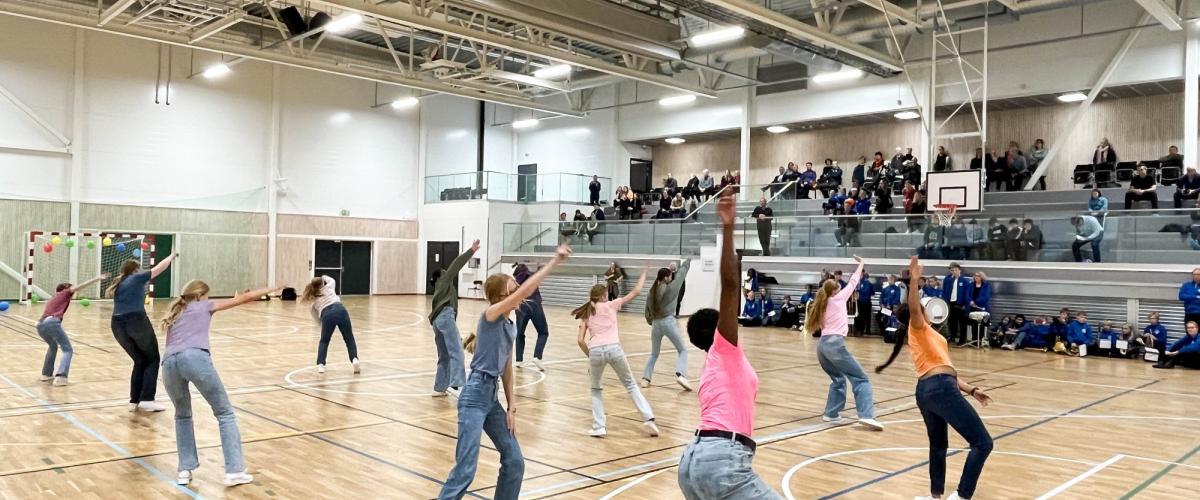 Turnhall og friidrettssone er bygget som en sammenhengende flate og nyttiggjør en rekke sambruksløsninger.
