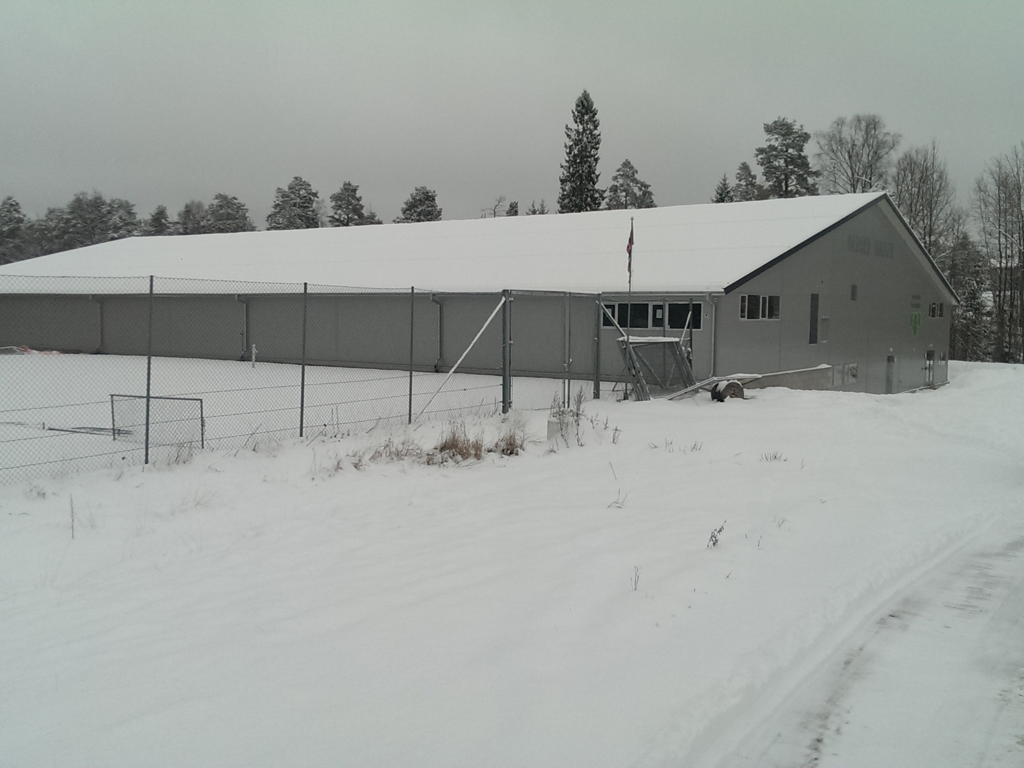 - Stålhall levert fra OTEC AS, ventilert, elektrisk oppvarming forvarmet luft, middels god akustikk – det planlegges tilleggstiltak for å forbedre akustikken.
