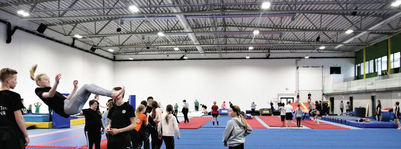 Hallen inneholder en stor basishall med aktivitetsflate på 28 x 45 meter utstyr spesielt tilpasset troppsgymnastikk [1]. I tillegg er det to mindre aktivitetsflater med parkett. I hovedhallen er det et stort gropområde med hev- senkbare groper, fast grop, klossegrop, trampolinebane og fire nedsenkede trampoliner. De to tilleggsflatene ligger "vegg i vegg" med hovedhallen. Der er det installert RG-teppe i den ene delen, den andre delen egner seg blant annet til aerobic-aktiviteter, Gym X etc. I sum gjør dette at anlegget er tilrettelagt for alle aldersgrupper i både bredde- og konkurranseidrett. I andre etasje er det tribune, kontorer/møterom, kioskområde med kafé og tekniske rom.