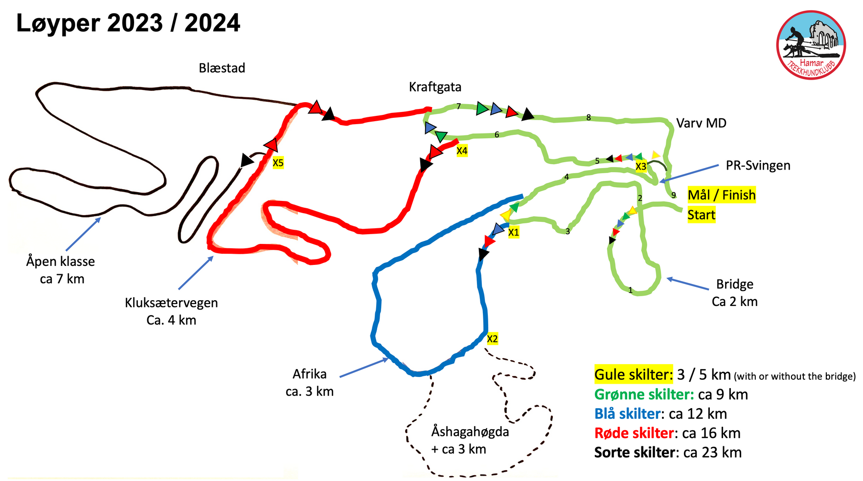 Både distanser og klasser kan variere.