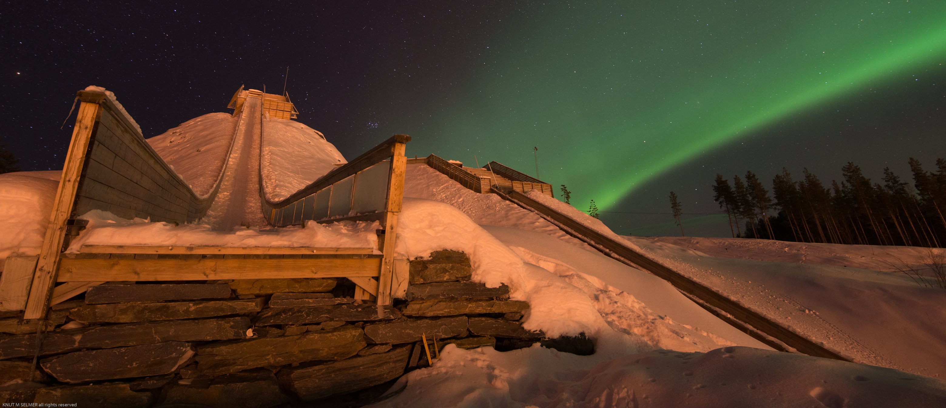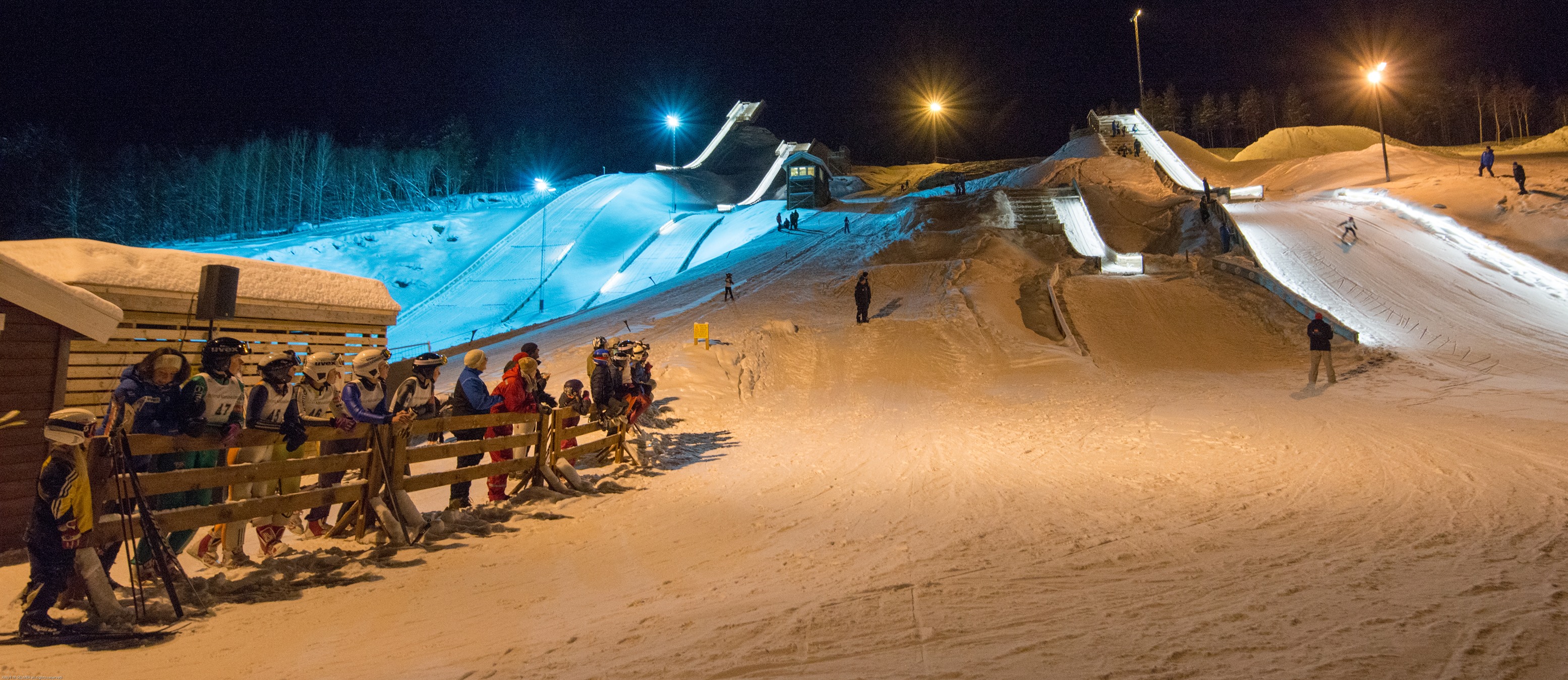 Organisering av dugnad ble gjort av flere dugnadsledere med hvert sitt fagområde, i tillegg til en lønnet kreativ dugnadsleder. Med dugnadsjobbing under hele vinteren ble det bygget elementer i betong og tre til overrennene. Elementene ble deretter satt på plass av maskinfører under bygging. Byggestart var høsten 2013, med vinteråpning 9.1.2015.