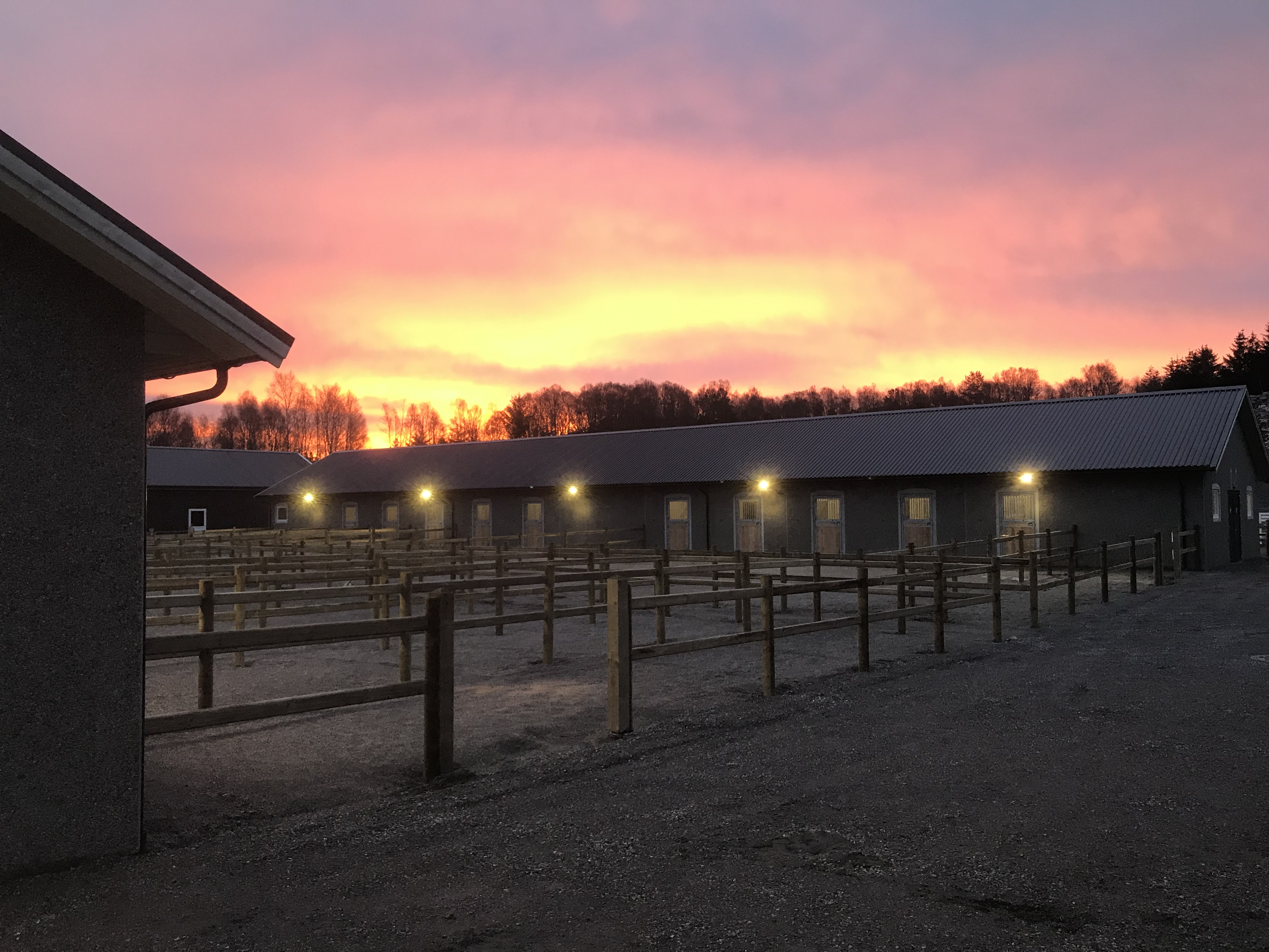 - To stallbygninger med til sammen 40 stallplasser som har direkte utgang til egen, liten luftegård
