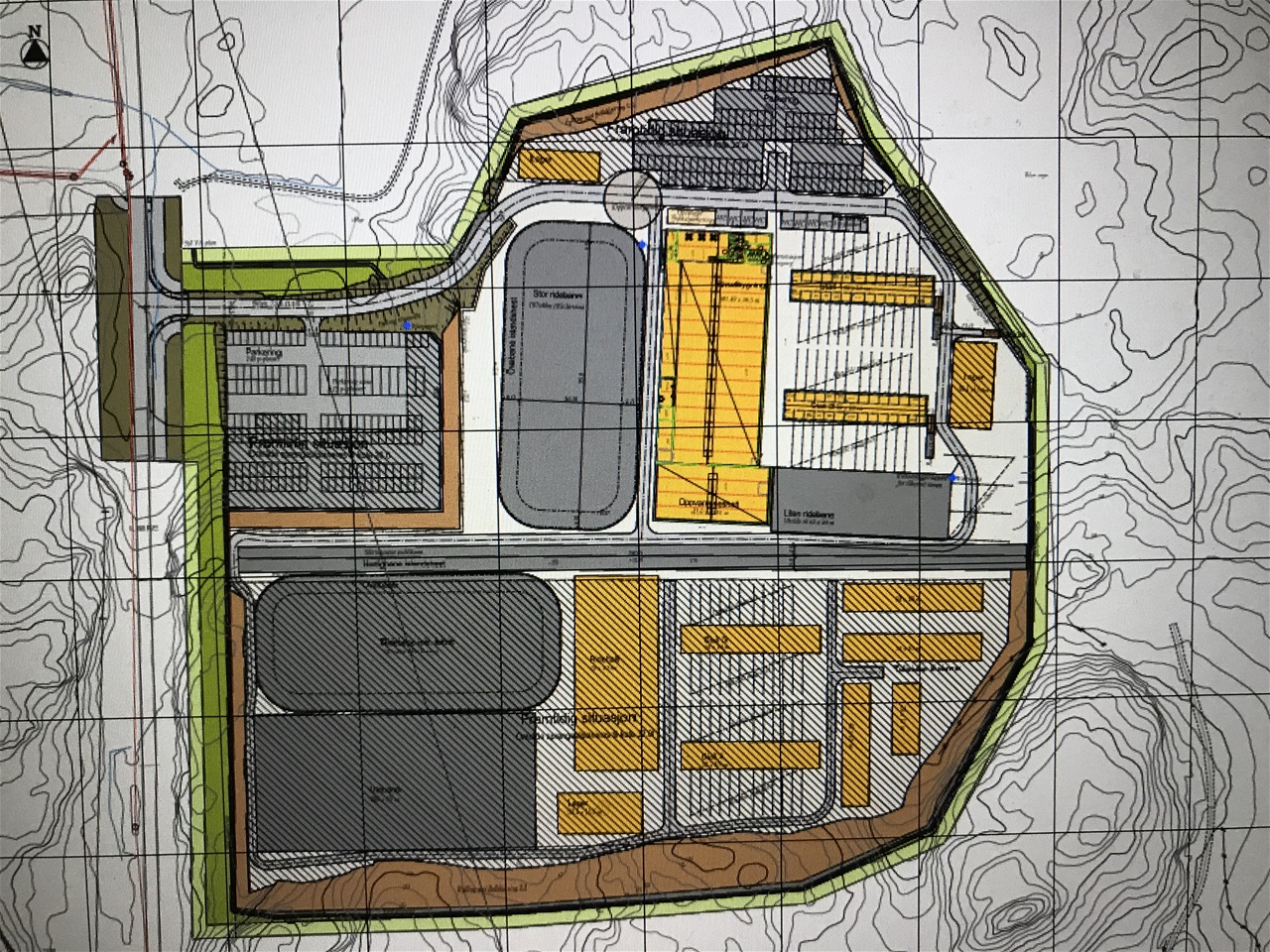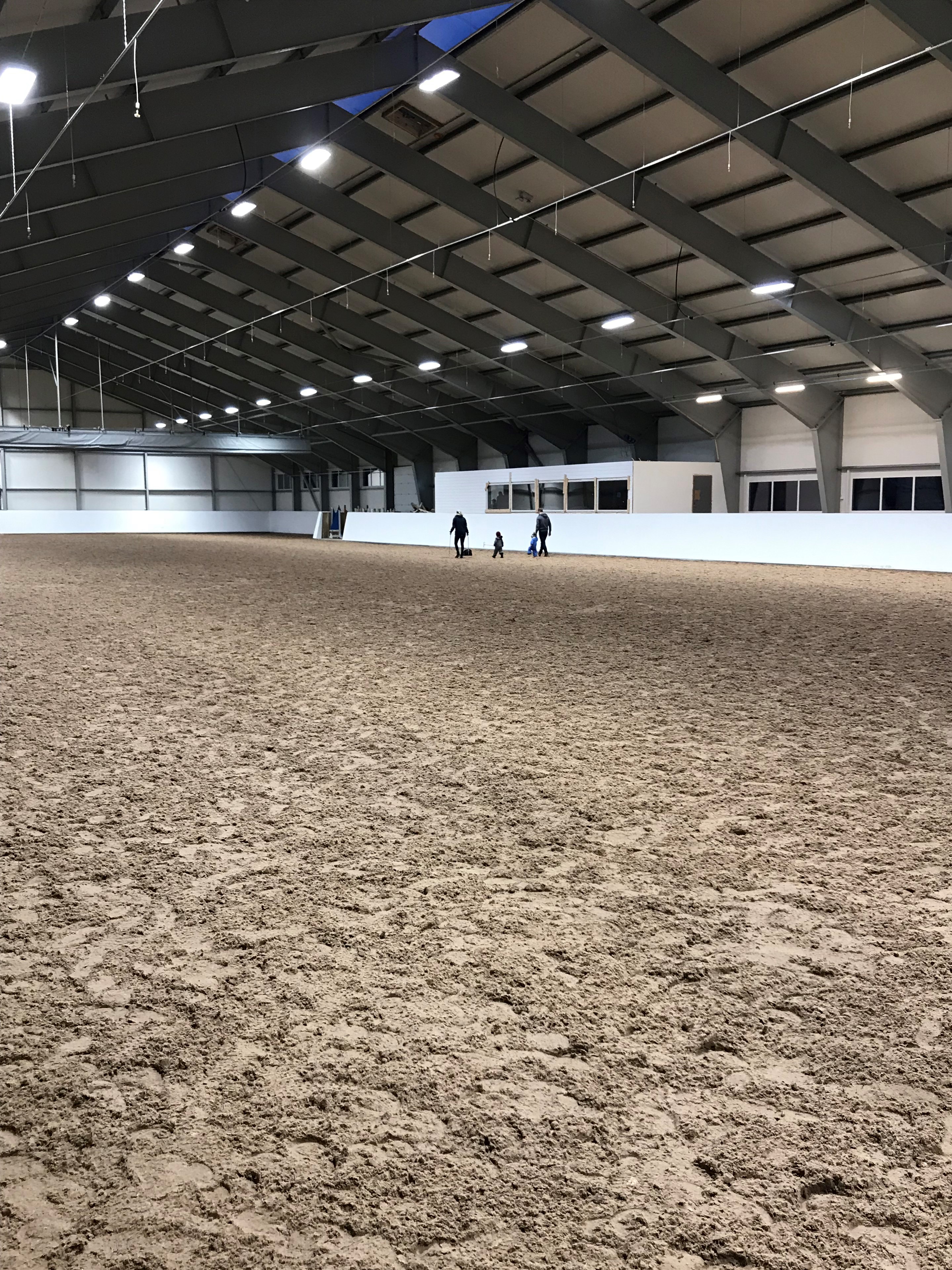 - Liten ridehall 21 x 41 meter (kan slås sammen med hjelp av elektrisk idrettsgardin)