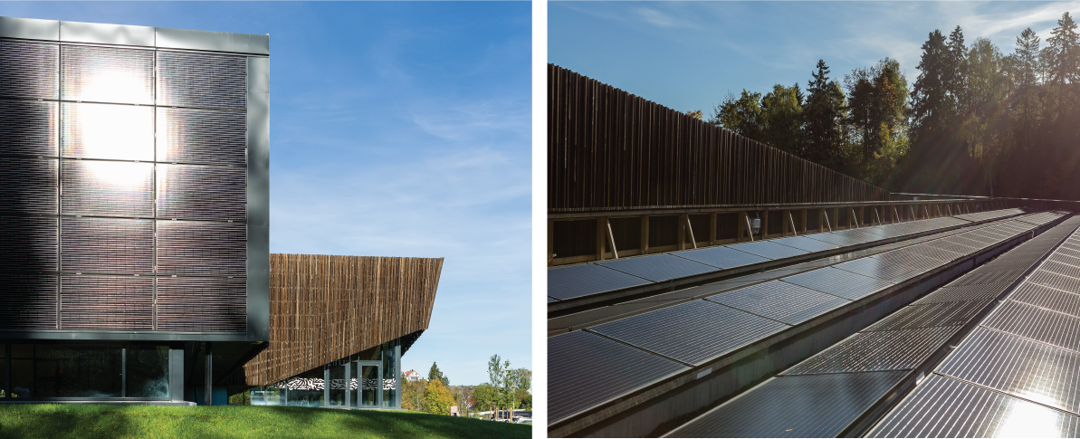 Prosjektet inkluderer 800 m2 med solfangere på parkeringsplasser og veiareal. Solfangeranlegget varmer/lader opp bergbrønnene på sommerhalvåret, mens deler av anlegget fungerer som snøsmelteanlegg vinterstid. Solcelleanlegget dekker omtrent 12 % av det årlige strømforbruket til hallen.