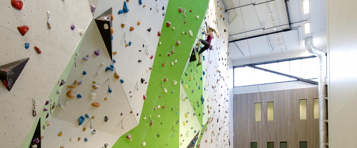 Klatreveggen har blitt et blikkfang i det man går inn i idrettsanlegget. Sammen med en kafé på motsatt side, gir dette et flott inngangsparti og et naturlig sosialt stoppested.