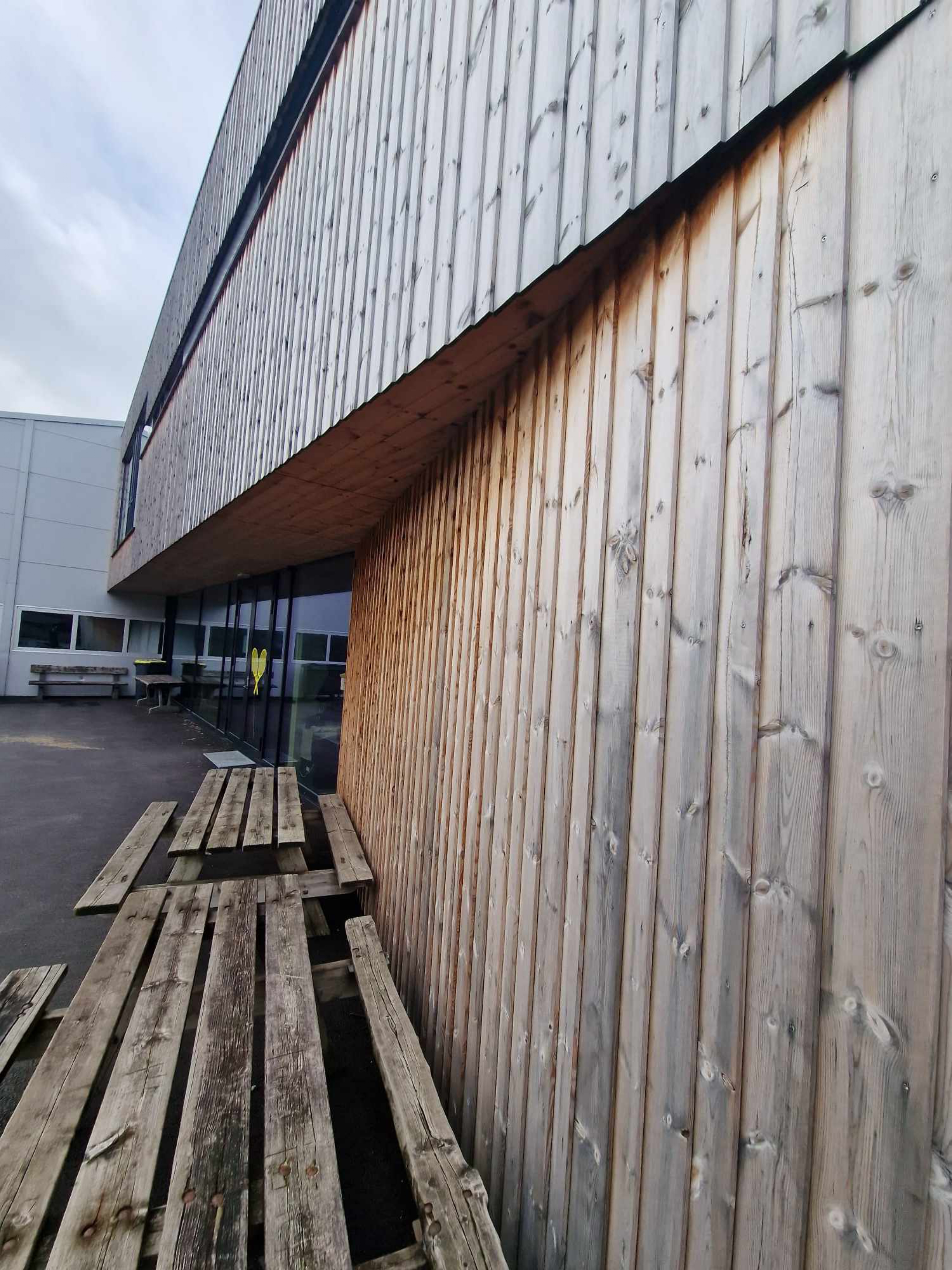 Hallen er levert av Stålteknikk AS i Stavanger som også har levert hall til Randaberg TK. Hallen er en stålkonstruksjon med sandwichelementer 15 cm isolasjon i vegg og tak. Den varmes opp av to varmepumper på 18 kW. To vifter i taket gir luftsirkulasjon. Se ellers fasadetegninger i "Last ned"-boksen til høyre på siden.