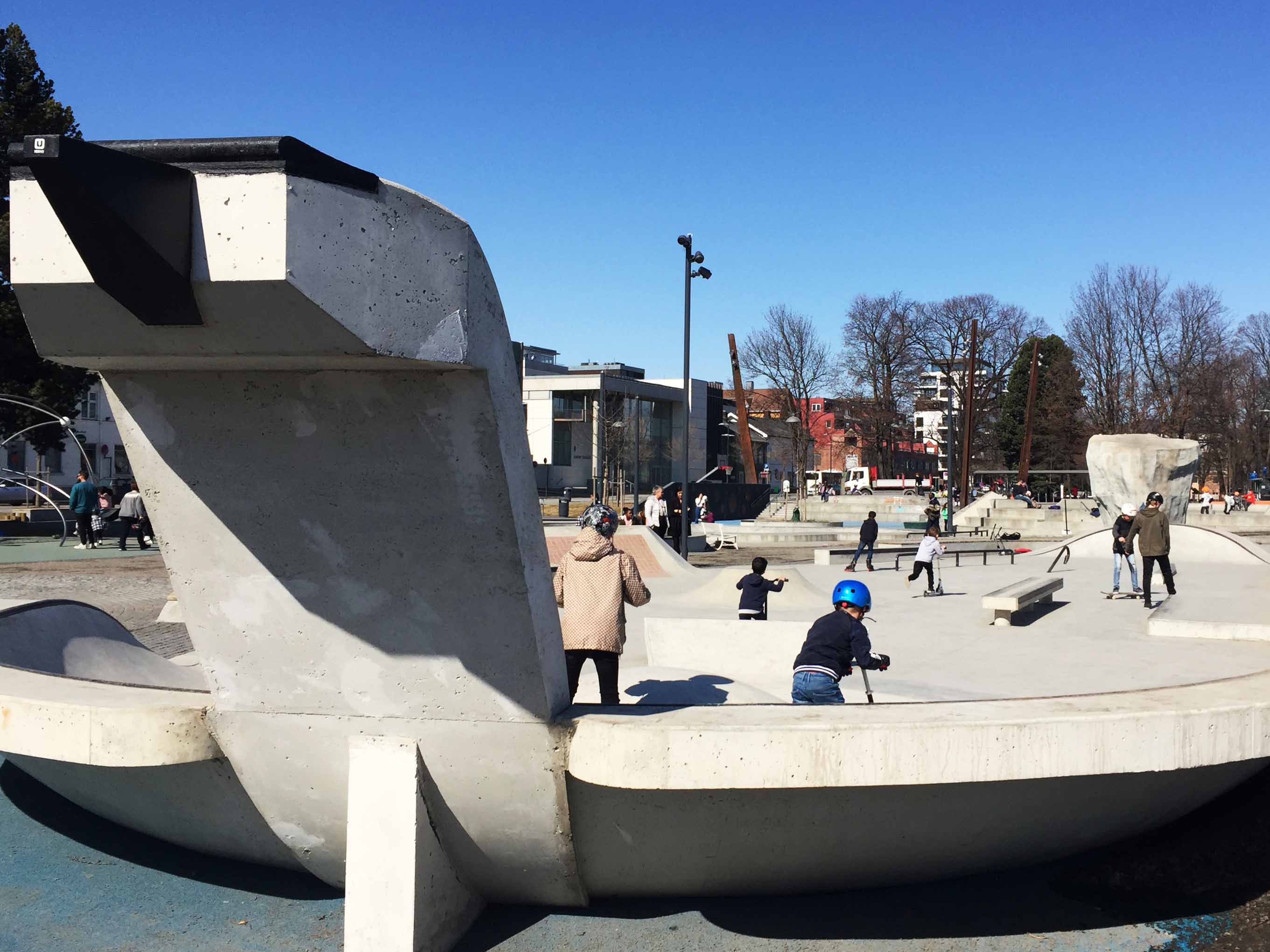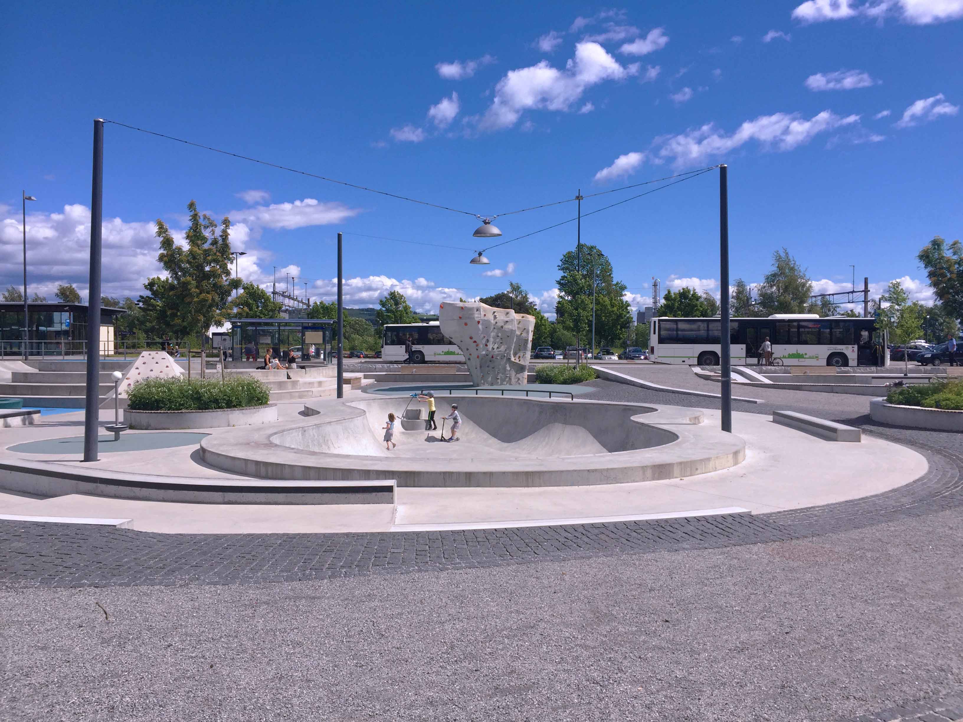I hverdagen fører plasseringen og den kompakte løsningen til at folk samler seg og gir en opplevelse av økt urbanitet og byliv. Folk som venter på bussen og toget, slår i hjel ventetiden med å kikke på skatere og barn i lek.