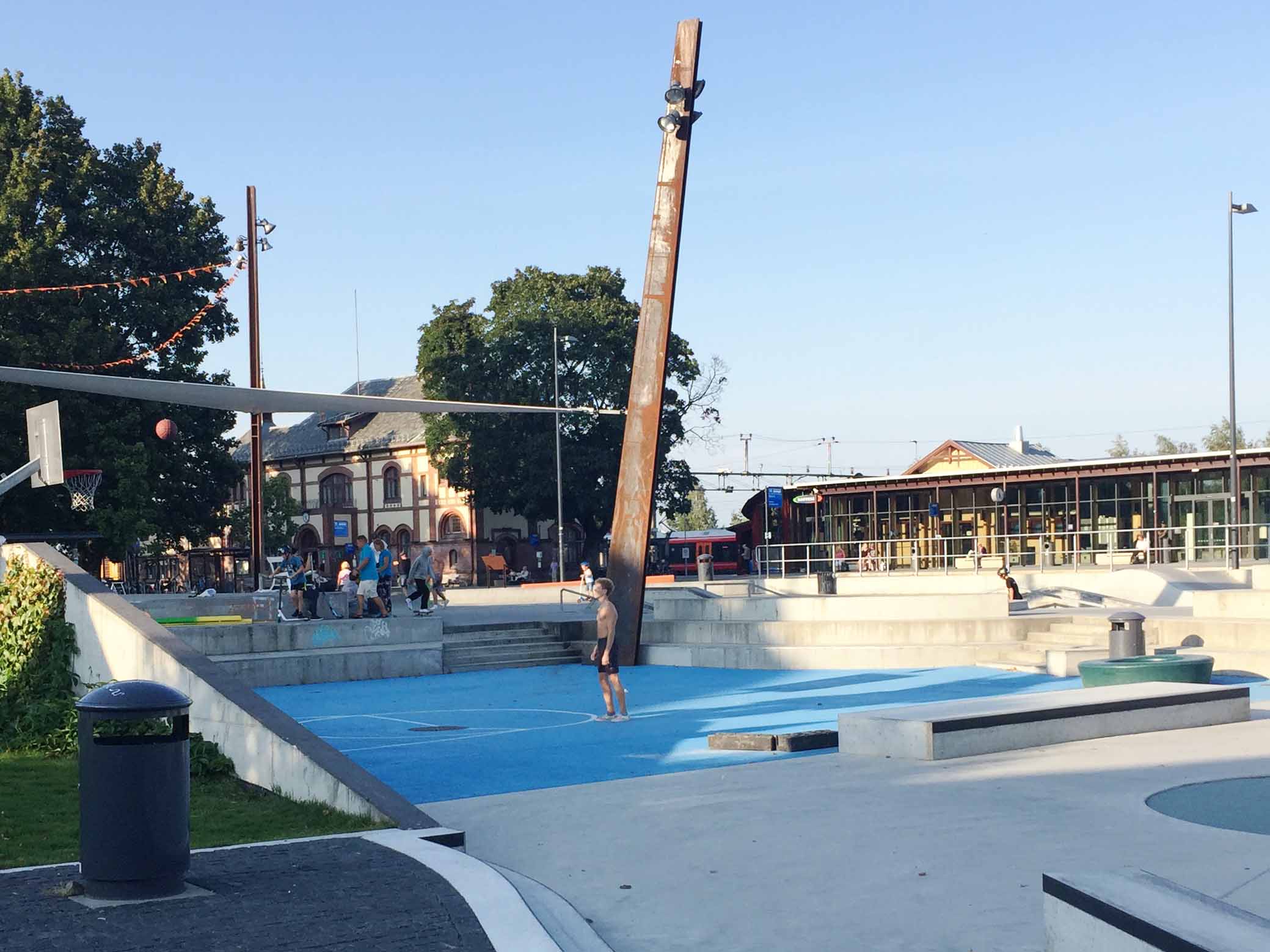 Dette anlegget skiller seg ut pga. sin sentrale plassering i kjernen av sentrum inntil et kollektivknutepunkt og bytorg med stor konsentrasjon av gangtrafikk. Anlegget har høy, urban kvalitet med plassbygde elementer med multifunksjoner for opphold, fysisk aktivitet og lek.