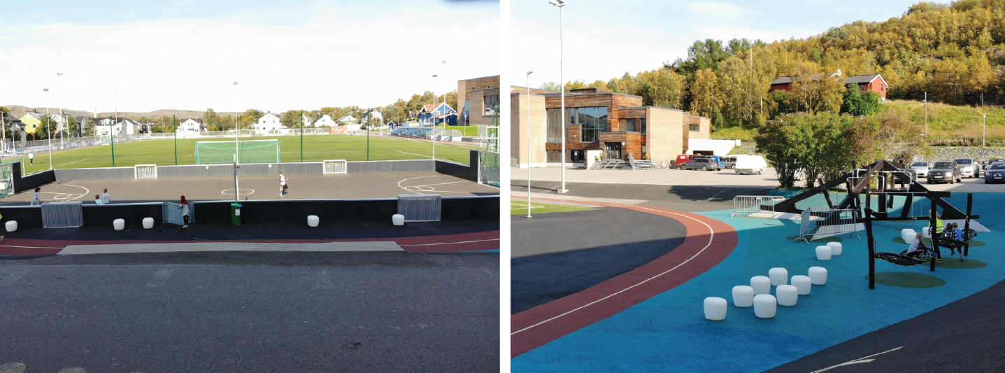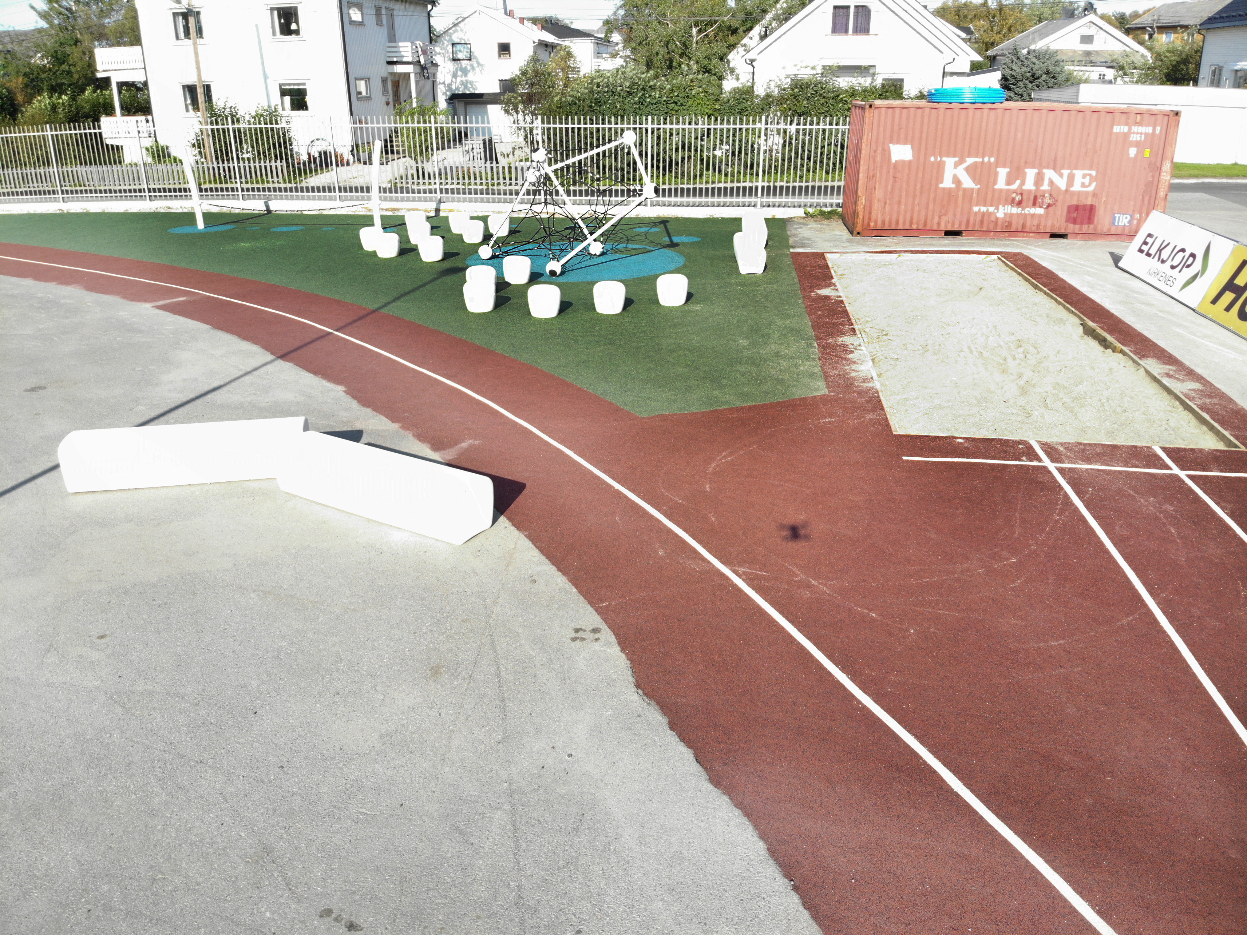 - Terrengforskjeller i området er fjernet slik at alle aktivitetsområder er lett tilgjengelige også for småbarn og bevegelseshemmede.