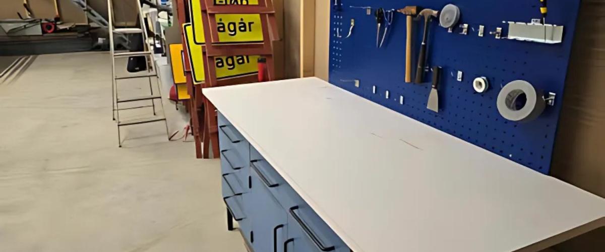 - Romslig lager for oppbevaring av arrangementsutstyr, og som også brukes som verksted