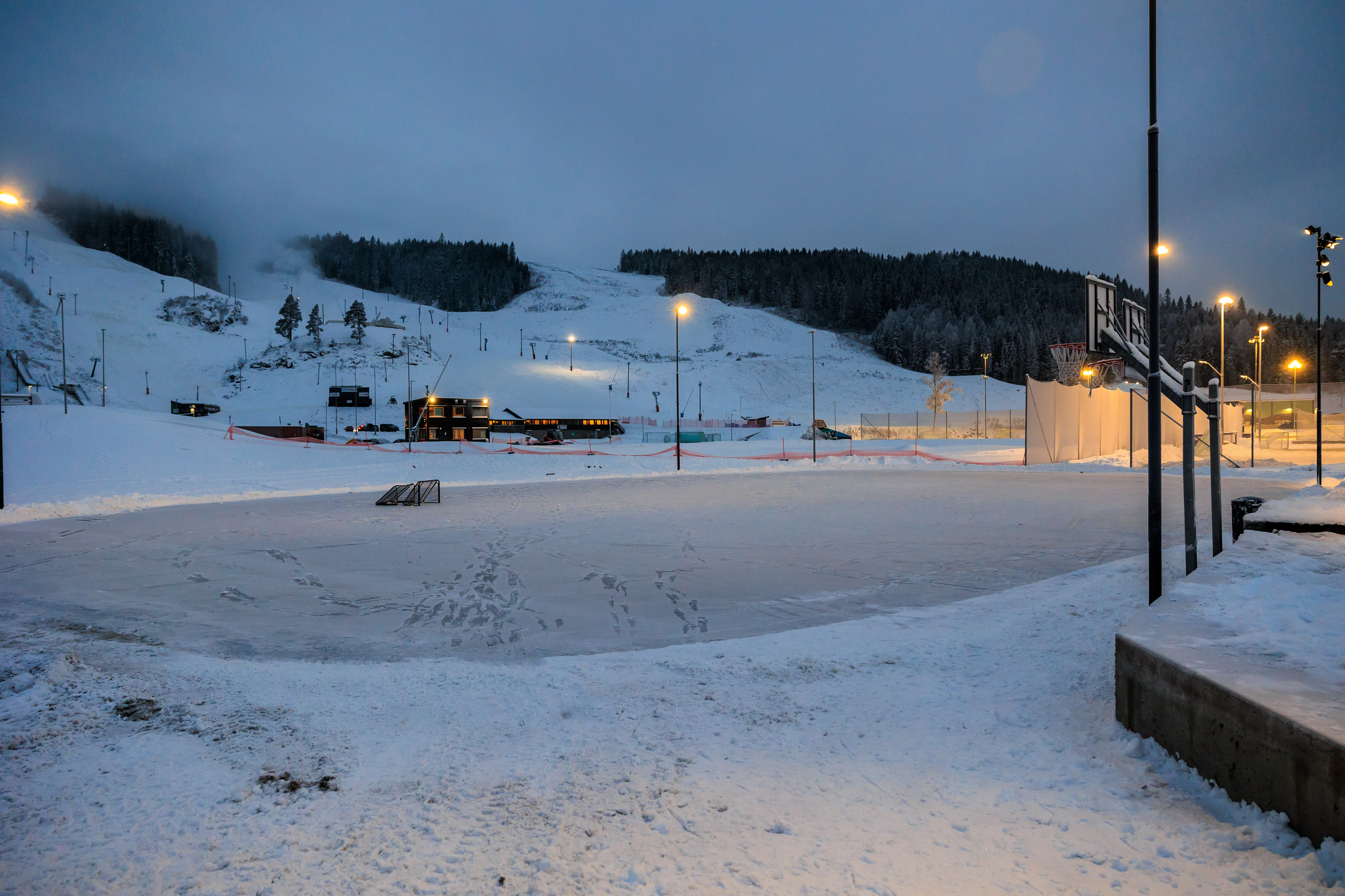 - Basketballbane (sommer) eller skøytebane (vinter)