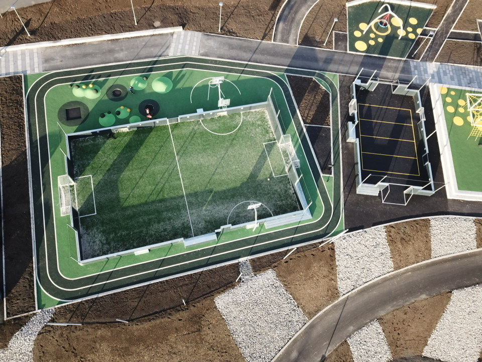 Området inneholder blant annet mye interaktiv lek som kan brukes i undervisningen, deriblant en såkalt e-wall og scoreboard med biip test funksjon. Multibanen har LED-lys i vegger og det er montert høyttalere til bruk på arrangementer og hverdag.