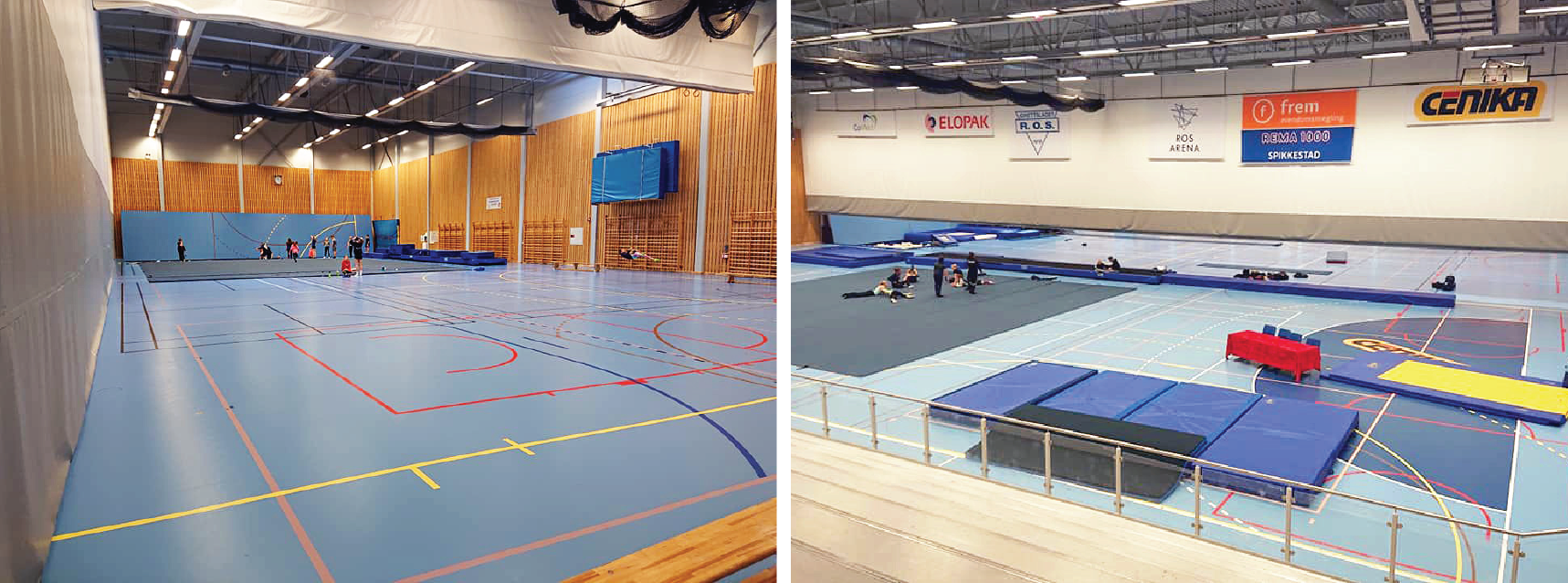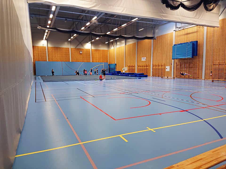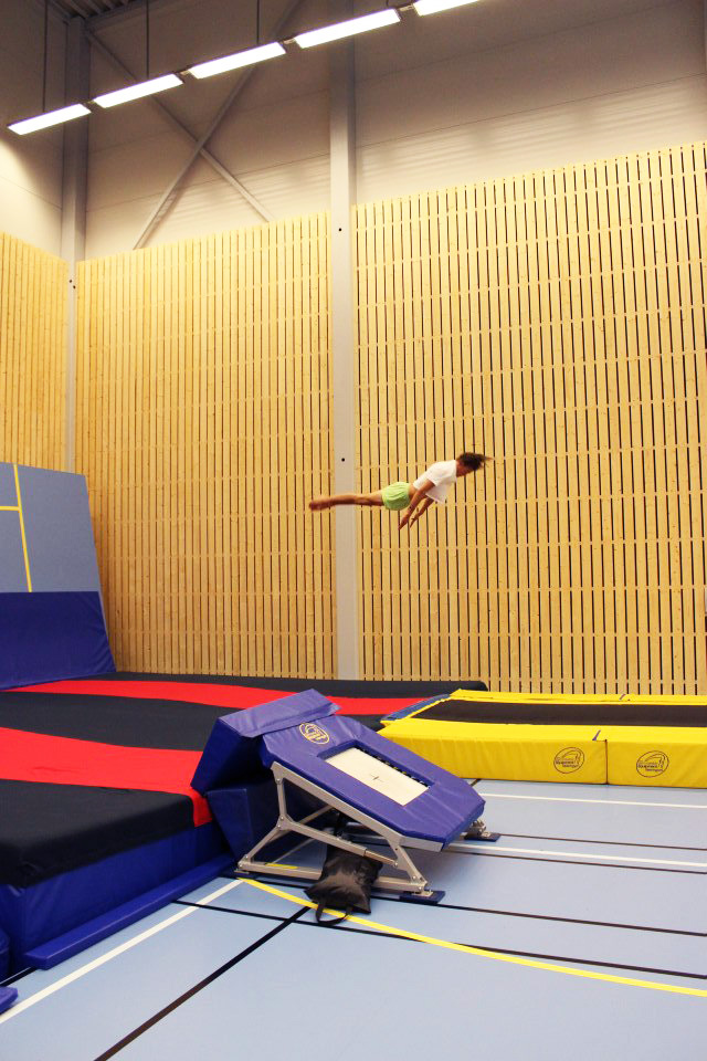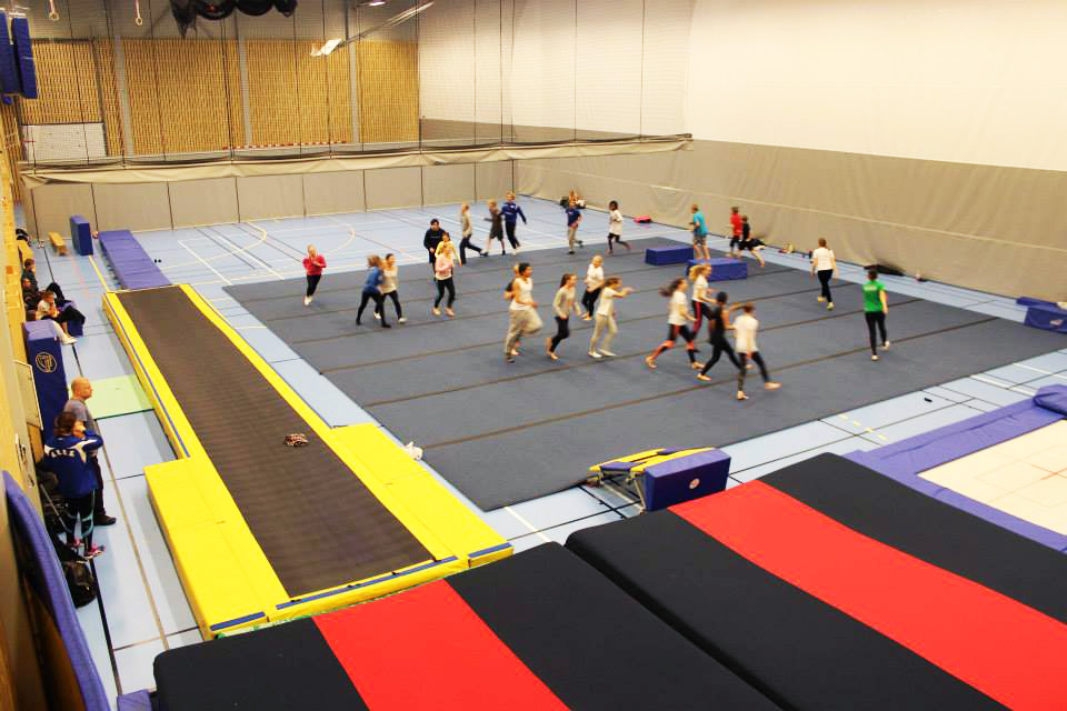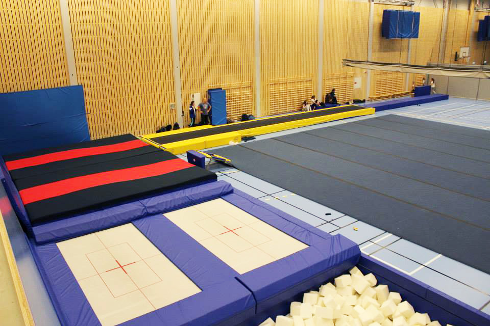 Turnhall med hev/senkbare groper til trampett og tumbling, to stortrampoliner og løsskumgrop. Tumblingbane og frittståendeteppe ligger fremme, i tillegg finnes et godt utvalg av trampetter, landingsmatter og skumapparater, lufttumbling og et utvalg kasser, matter, springbrett mm.