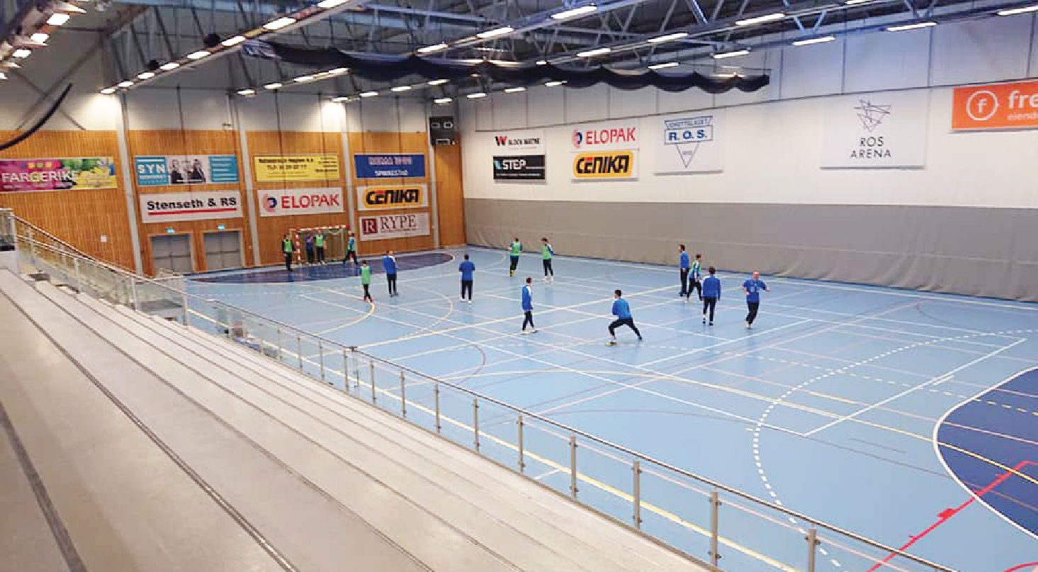 20 x 40 m med standard sikkerhetssoner, tilrettelagt for trening og kamper med plass til speaker, godt lydanlegg, elektroniske resultattavler og kombielastisk sportsgulv fra Unisport. Tribunen har kapasitet til 6-700 tilskuere. Det er også kamparena for volleyball, og muligheter for treningsbane for basketball og volleyball.