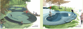 Inkludert i anlegget er et lite amfi som kan benyttes til å skate på, men også å sitte i når man ser på de andre eller venter på sin tur.