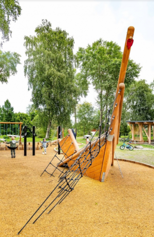 I parkens nordlige del er det tilrettelagt for de yngste med blant annet husker og klatrenett.