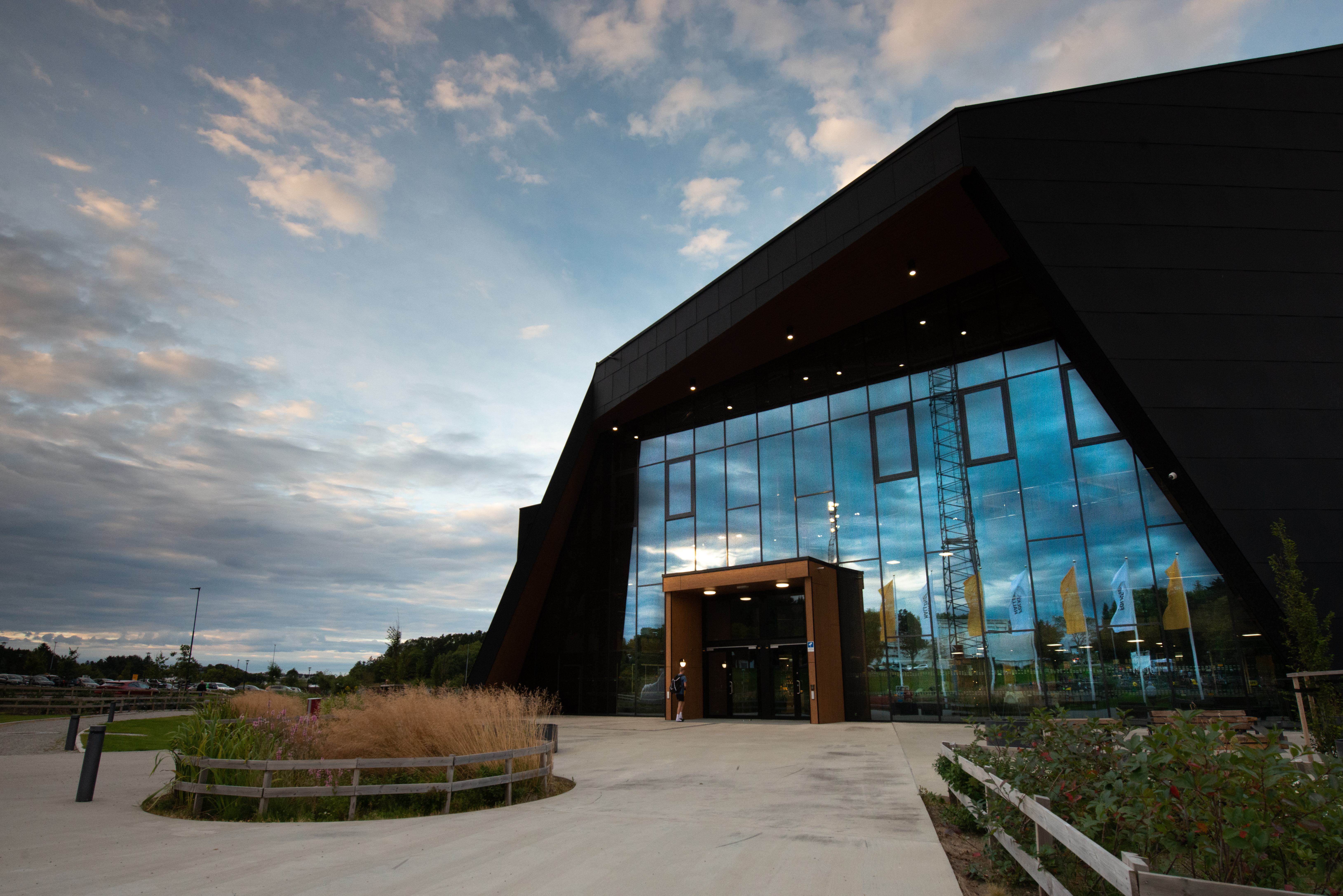 Bygget har en arkitektur inspirert av stealth-design, med en sirkelformet planløsning som gir et dynamisk uttrykk. En av de viktigste designbeslutningene var å løfte sykkelbanen én etasje, noe som frigjorde plass til garderober og lager under banen. Dette ga samtidig flerbrukshallen en mer funksjonell plassering på bakkeplan, med enklere adkomst og bedre logistikk.