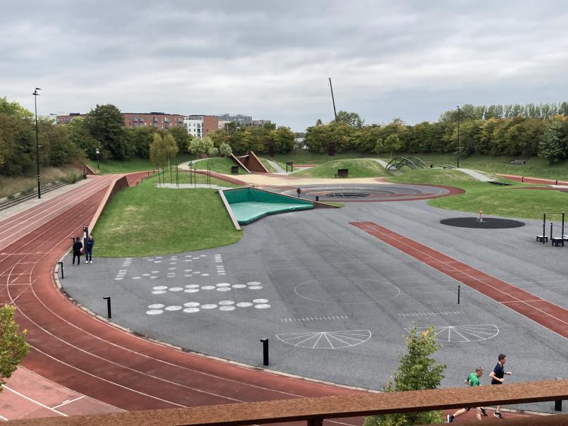 I den danske byen Odense finner man et friidrettsanlegg utenom det vanlige. Da den gamle friidrettsbanen ved Syddansk Universitet skulle renoveres valgte danskene å eksperimentere med anleggets utforming. Byen hadde allerede et konkurranseanlegg for friidrett, og arkitektene fikk fritt spillerom til å lage et innovativt friidrettsanlegg. Resultatet ble Athletics Exploratorium. Anlegget byr stor grad av variasjon i løpetraséer, og muligheter til å utforske og utvikle grunnleggende ferdigheter som løp, hopp og kast.