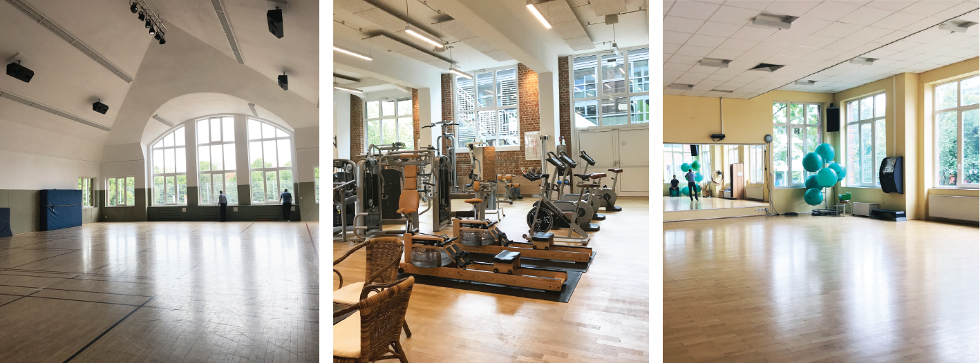 Den opprinnelige idrettshallen ble bygget som en basishall av turnere for turnere. Under en større rehabilitering, ble gulvet hevet 5 meter for å kunne etablere en underetasje. I dag brukes hovedhallen til en rekke ulike aktiviteter, både til trening og fremvisninger.