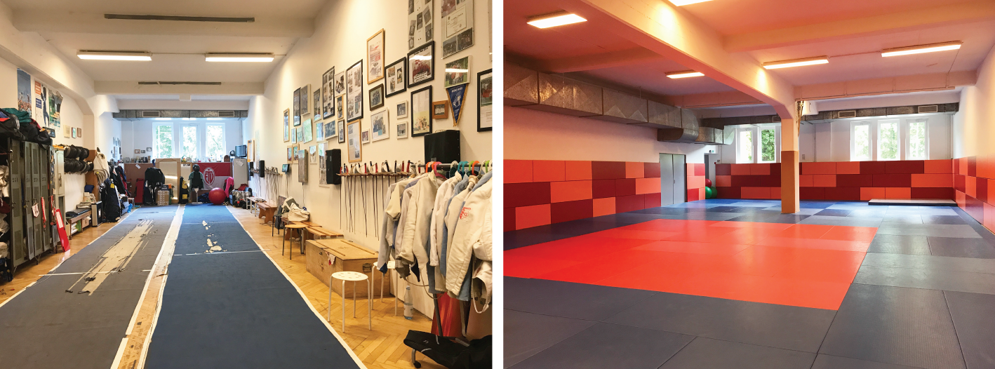Etter at gulvet i hovedhallen ble hevet 5 meter, fikk de fristilt et stort areal. I denne underetasjen er det tilrettelagt for kampsport, der særlig fekting og judo er de fremtredende idrettene.