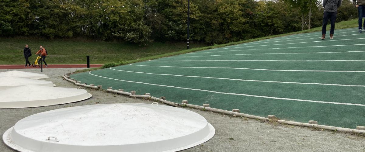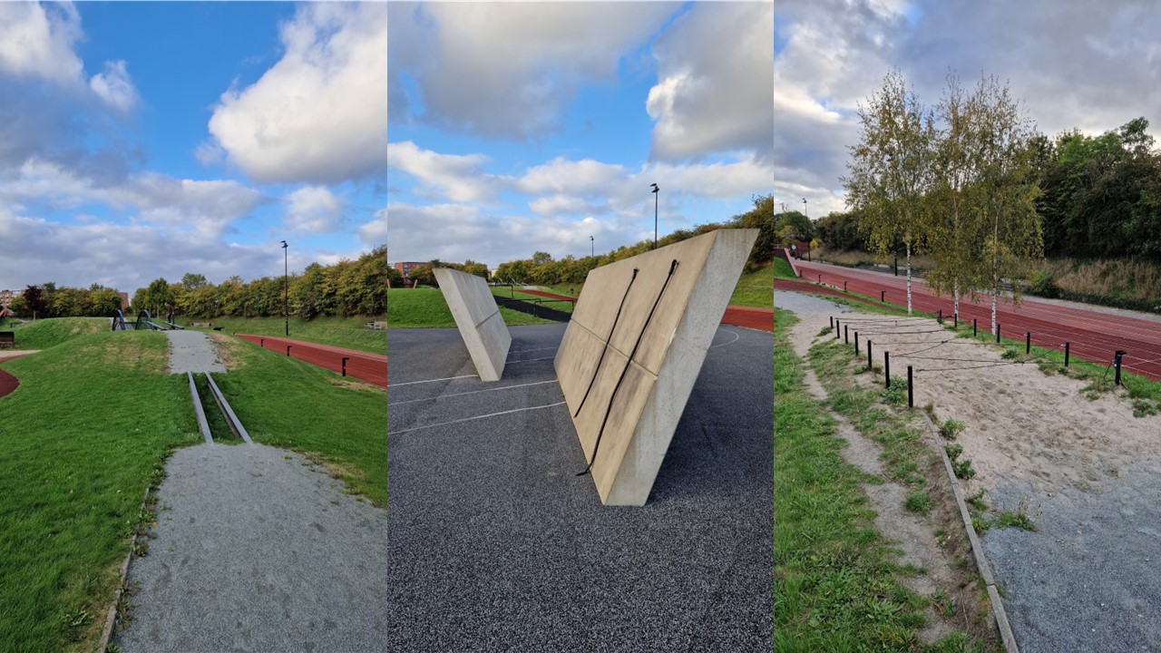 Anlegget er et friidrettsanlegg på 20 000m2 og ligger plassert rett utenfor universitetet i Odense. Anleggets brukergruppe strekker seg fra lekende barn til profesjonelle triatleter til mosjonerende eldre. Året etter at anlegget sto ferdig i 2014 var det 15 000 brukere av anlegget. Ser man anlegget ovenifra vil man kunne observere at anlegget er utformet etter inspirasjon fra "pinball"-spill, hvor anleggets sørlige del innholder mer åpne, asfalterte områder som gradvis blir "villere" dess lenger inn i anlegget man kommer.