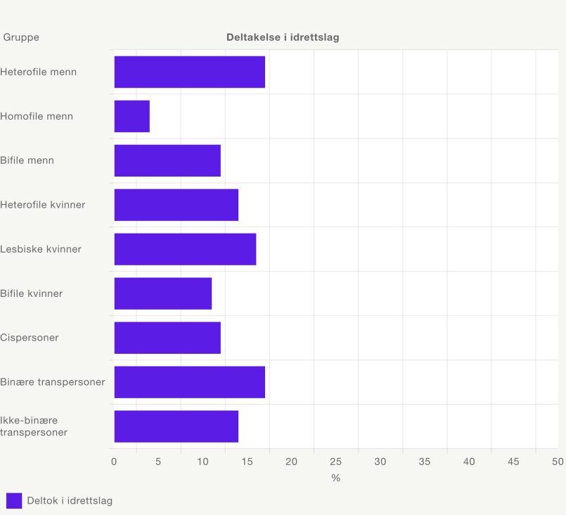 Å jobbe for å inkludering av LHBT+-personer er særlig relevant i idretten ettersom flere undersøkelser har vist at idretten ikke speiler befolkningen (bufdir.no) på dette området. Særlig gjelder dette homofile menn, som bare har en tredjedel så stor deltakelse i idrettslag som heterofile menn. Vi tror det er utrygghet og manglende åpenhet som ligger bak, da vi går ut fra at alle er like interessert i idrett uavhengig av seksuell orientering.