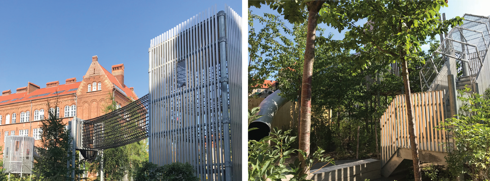 Naturlegepladsen ligger i Valbyparken i utkanten av København. Dette er Danmarks største naturlekeplass, en plass for utendørs lek og utfordringer som får pulsen opp. Idéen med lekeplassen har vært å skape et godt alternativ til kommersielle fornøyelsesparker, der alle kan komme gratis for å leke og oppleve naturens utfordringer, utfoldelsesmuligheter og sanseinntrykk. Lekeplassen beviser at man trenger ikke å bruke skarpe farger og organiske former for å appellere til aktivitet. Her fikk vi se et eksempel på en lekeplass som tar hensyn til den omliggende parken, og er holdt i naturlige farger og materialer.