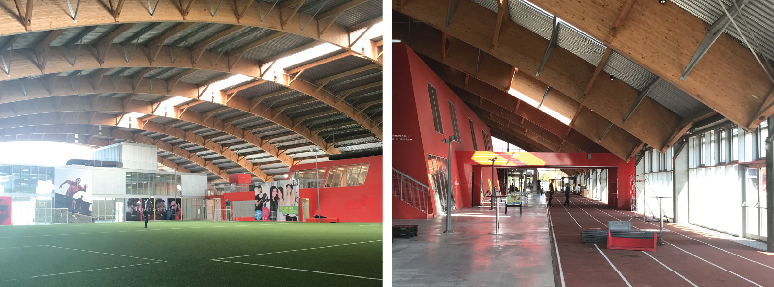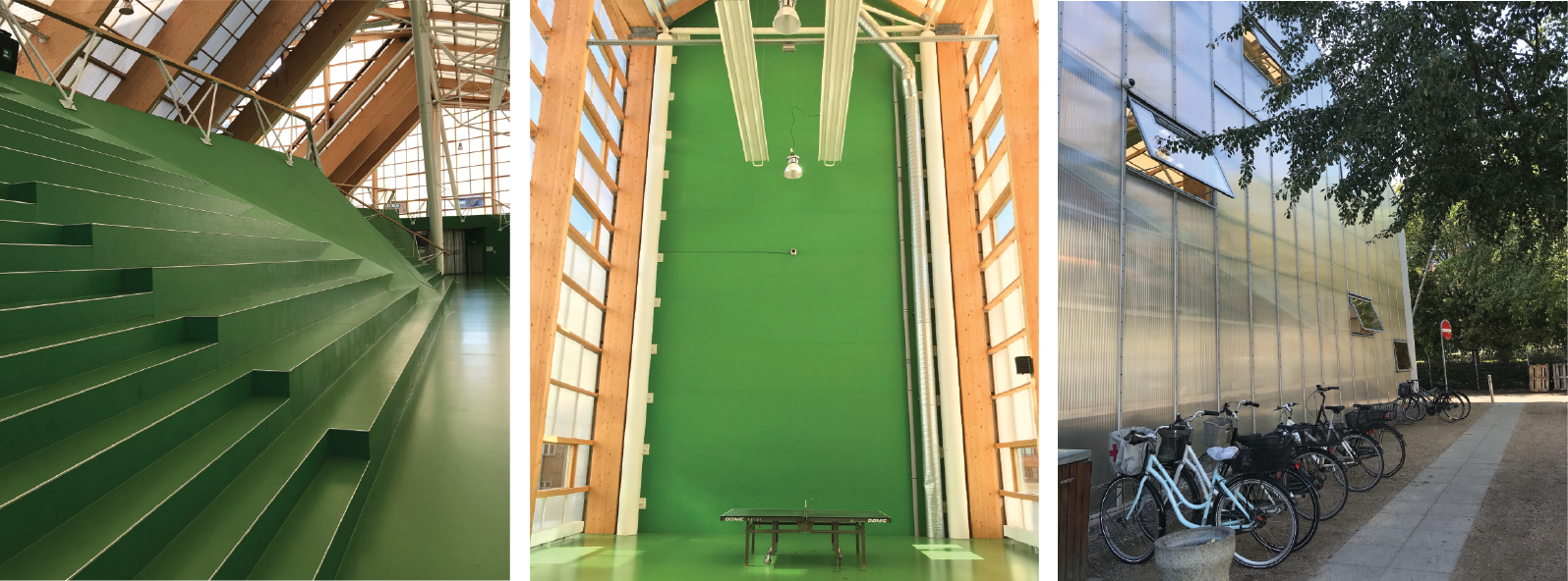 Prismen i Holmbladsgade på Amager, skal styrke og synliggjøre det lokale idrettslivet. Hallen skal gi følelsen av å være ute inne. Samtidig skal hallen være et møtested, hvor nabolagets idrettsutøvere og beboere kan møtes til gjensidig inspirasjon, og med tiden også inspirere nye potensielle idrettsutøvere til å komme i gang. Hallen ligger midt i et nabolag, som en del av et kvartal med boligblokker. I tillegg til å romme mye aktivitet, som handballflate, mulighet for å spille bordtennis og gym, tilbyr hallen også en kafé med bibliotek og kulturdel for blant annet dans og møtevirksomhet.