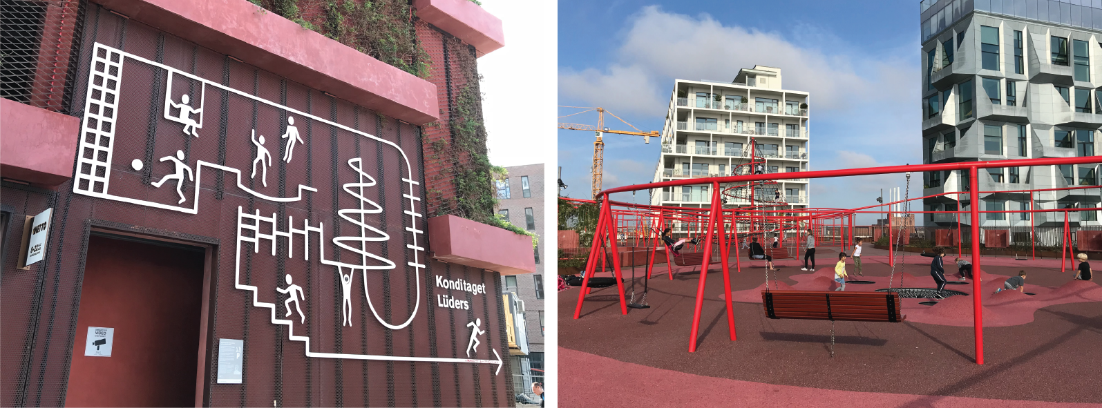 Dette anlegget har etter hvert blitt et velkjent anlegg i København. Konditaget Lüders er et 2.400 m2 offentlig byrom med fasiliteter for trening, opphold og lek. København er som mange andre storbyer under stor utvikling, og med mye bebyggelse kan det være utfordrende å finne områder for å skape aktivitet/ nærmiljøanlegg. Dette har de løst med Konditaget, som skiller seg ut ved at det ligger på taket av et parkeringshus, nærmere bestemt i 24 meters høyde.
